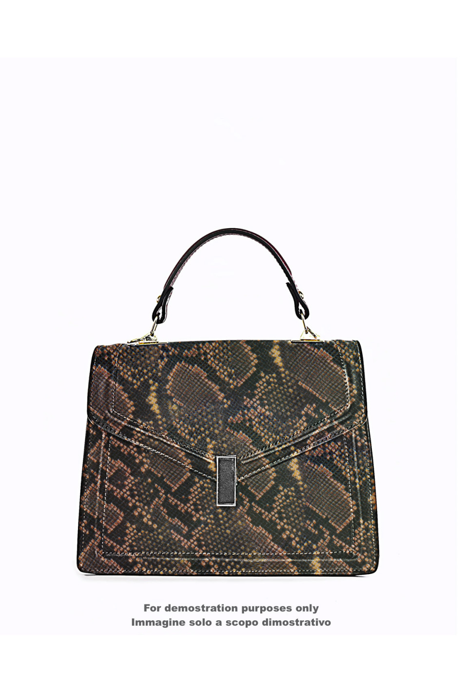 Stupenda pelle pitone marrone giallo, capra lucida stampa serpente, pellame morbido animalier rettile