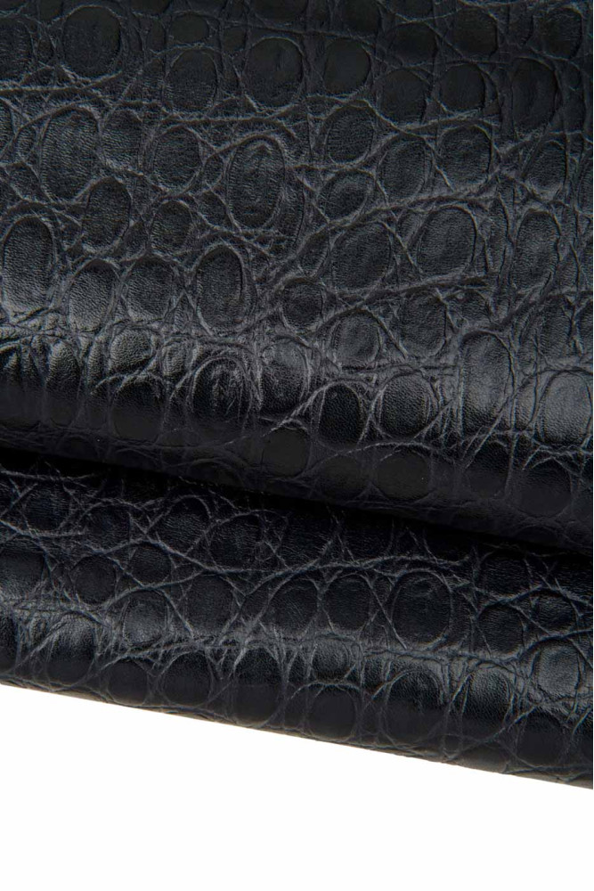 Pellame stampa COCCODRILLO testa di moro, vitello morbido motivo ANIMALIER, pelle lucida per artigianato