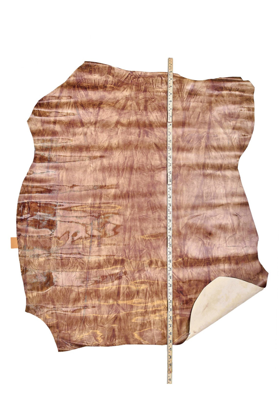 Pellame VERNICIATO marrone, agnello lucido effetto CORTECCIA, pelle stampa effetto stropicciato per artigiani