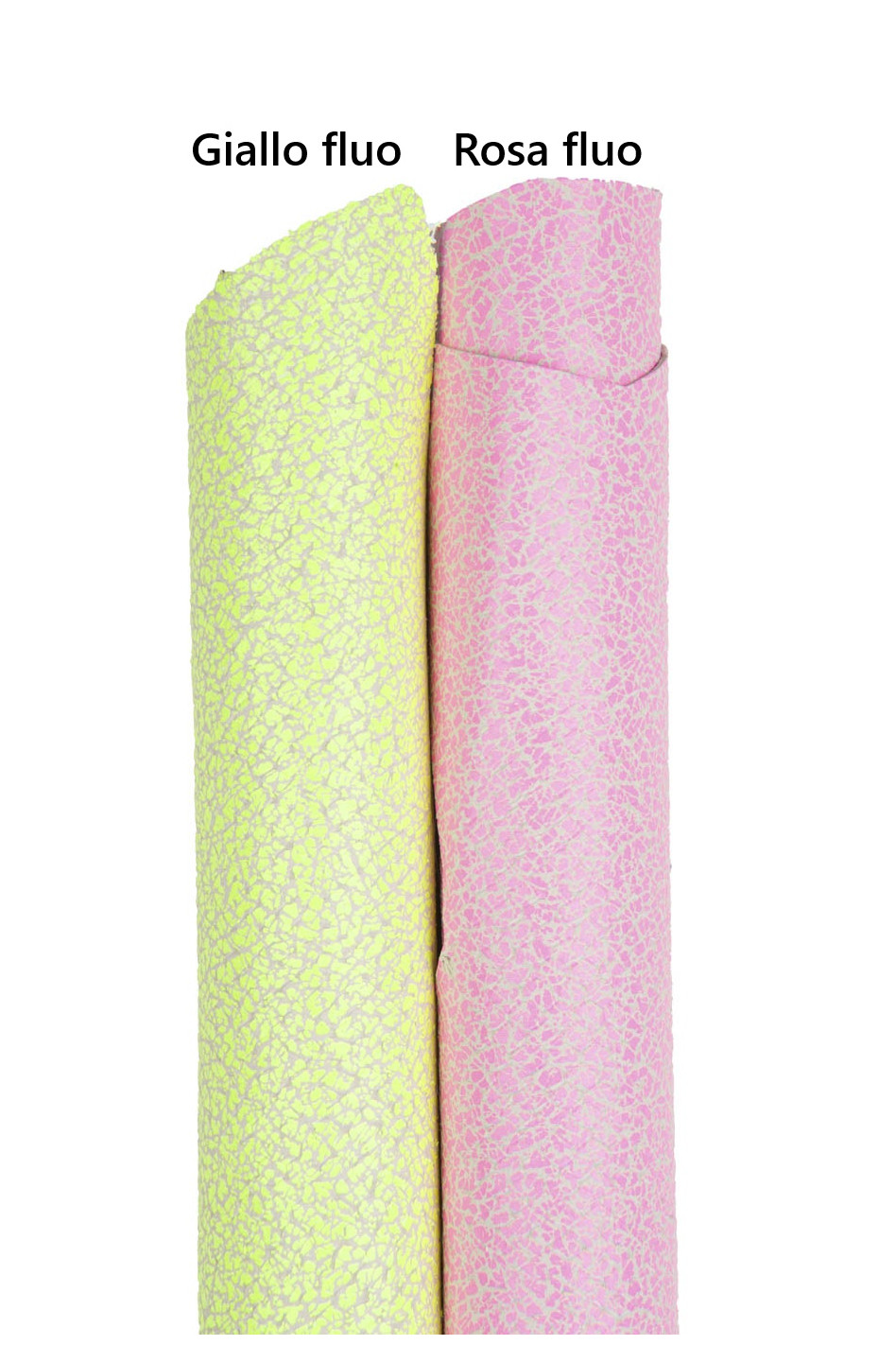 Incredibile pellame fluorescente rosa - giallo, pelle stampa pitone motivo crackle fosforescente, capra lucida morbida per hobbisti.