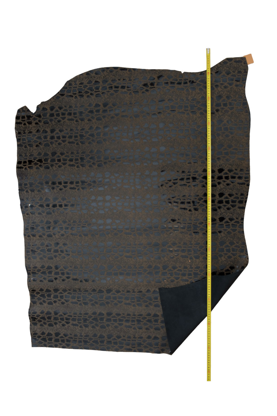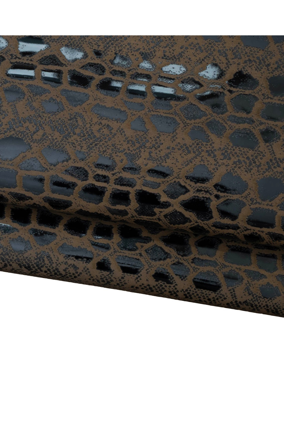 Bellissimo pellame serpente marrone e nero, vitello lucido morbido motivo pitone, con contrasto lucido-opaco. Ideale per hobbisti e artigiani.