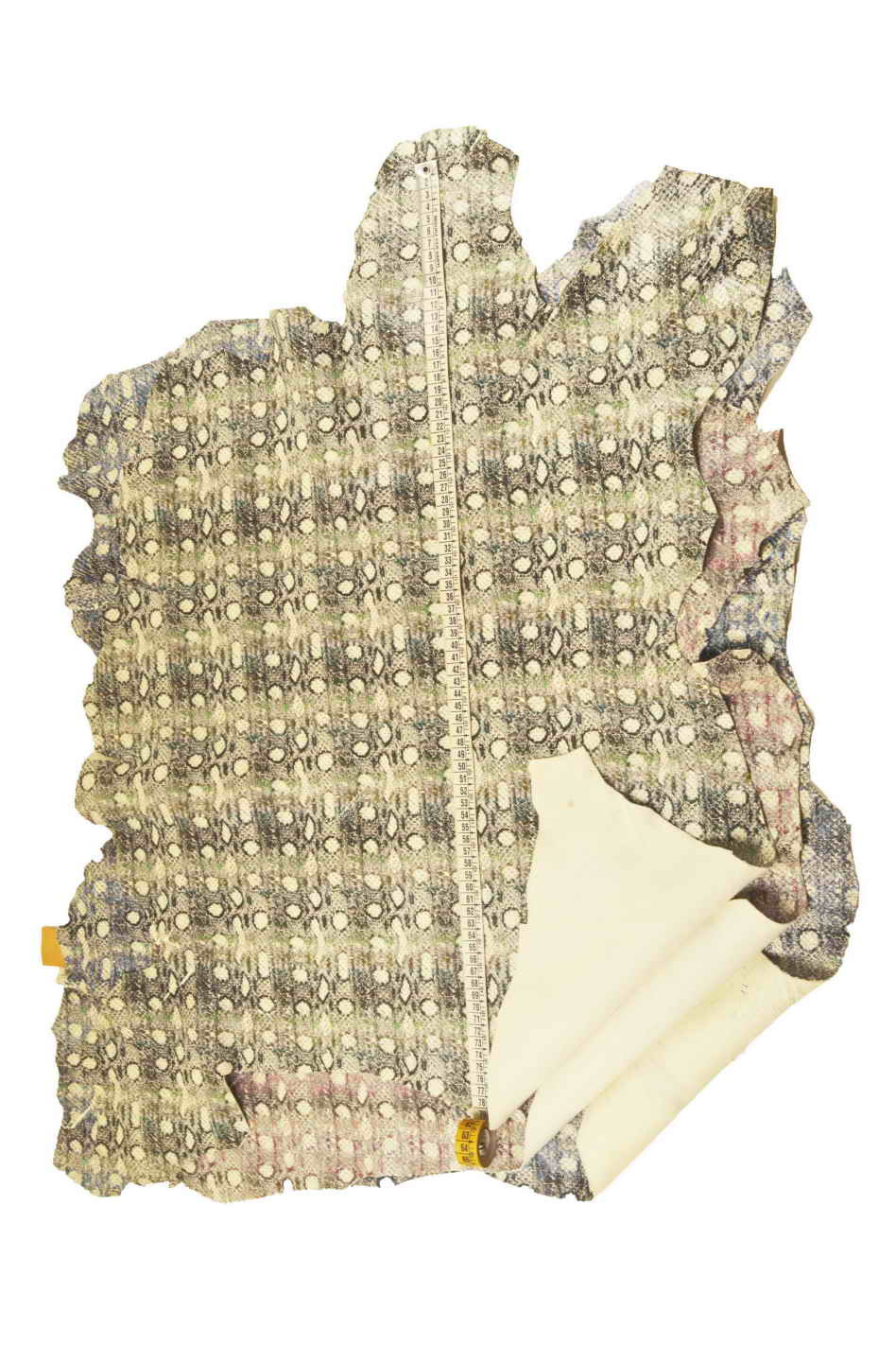 Stupenda pelle di capra con stampa intagliata di pitone, rosa, blu e verde, super morbida.