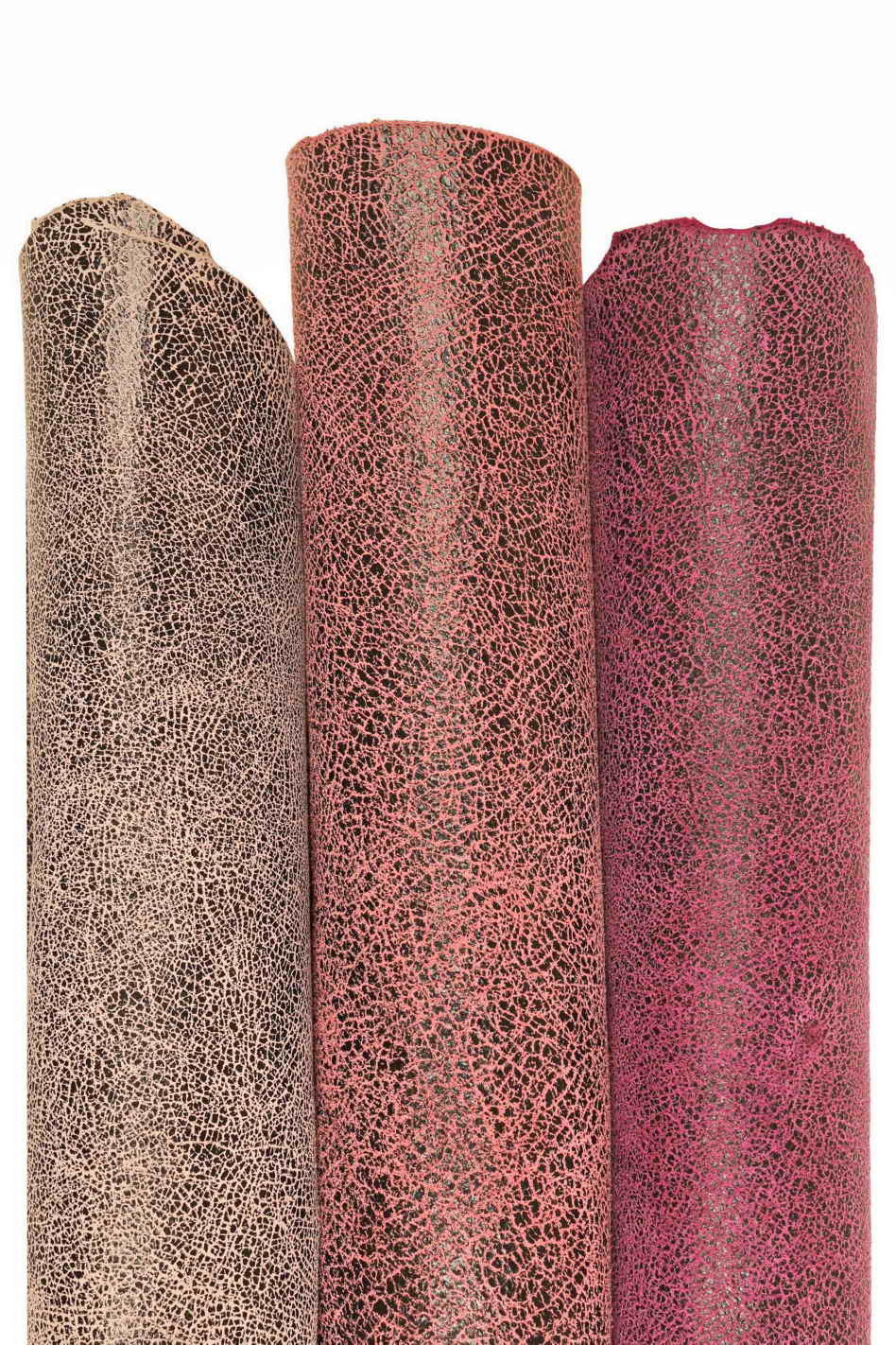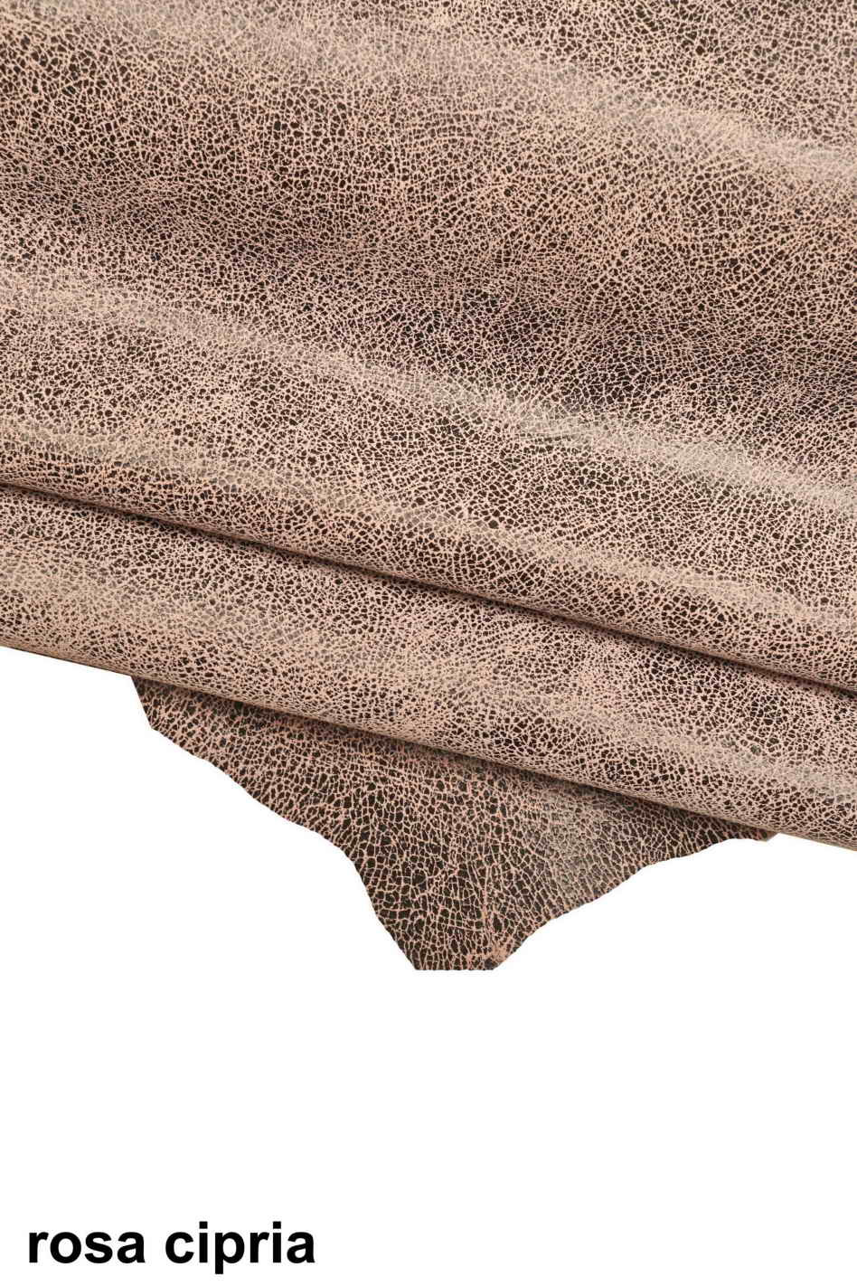 Particolare pelle di capra scamosciata rosa e viola con stampa crackle, morbida, disponibile in 3 colori.
