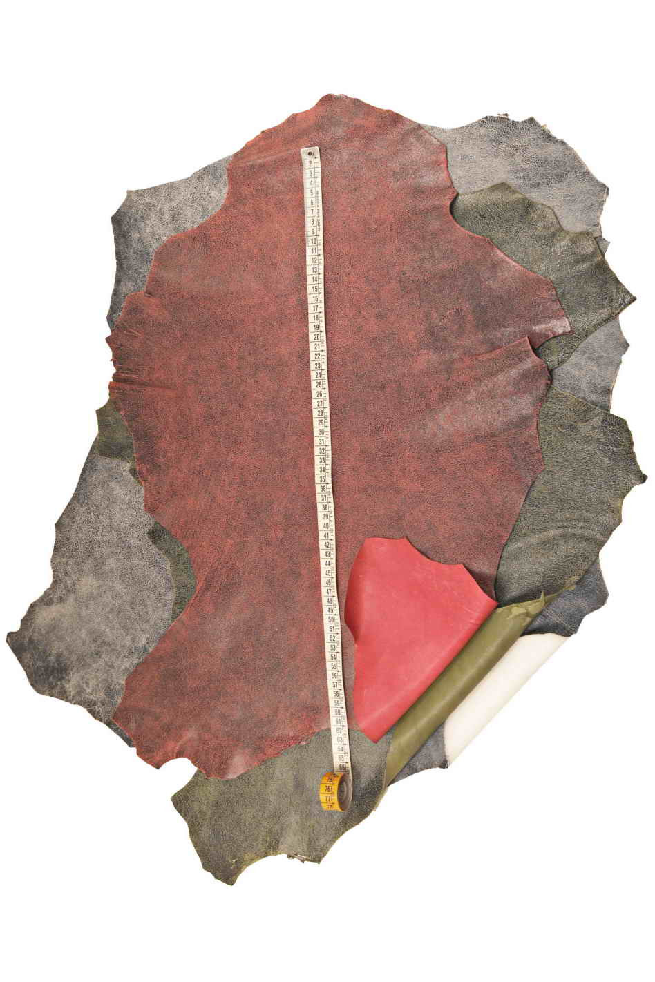 Pelle stampa CRACKLE grigio, verde, rosso, pellame scamosciato morbido, camoscio su capra disegno craquelé morbido