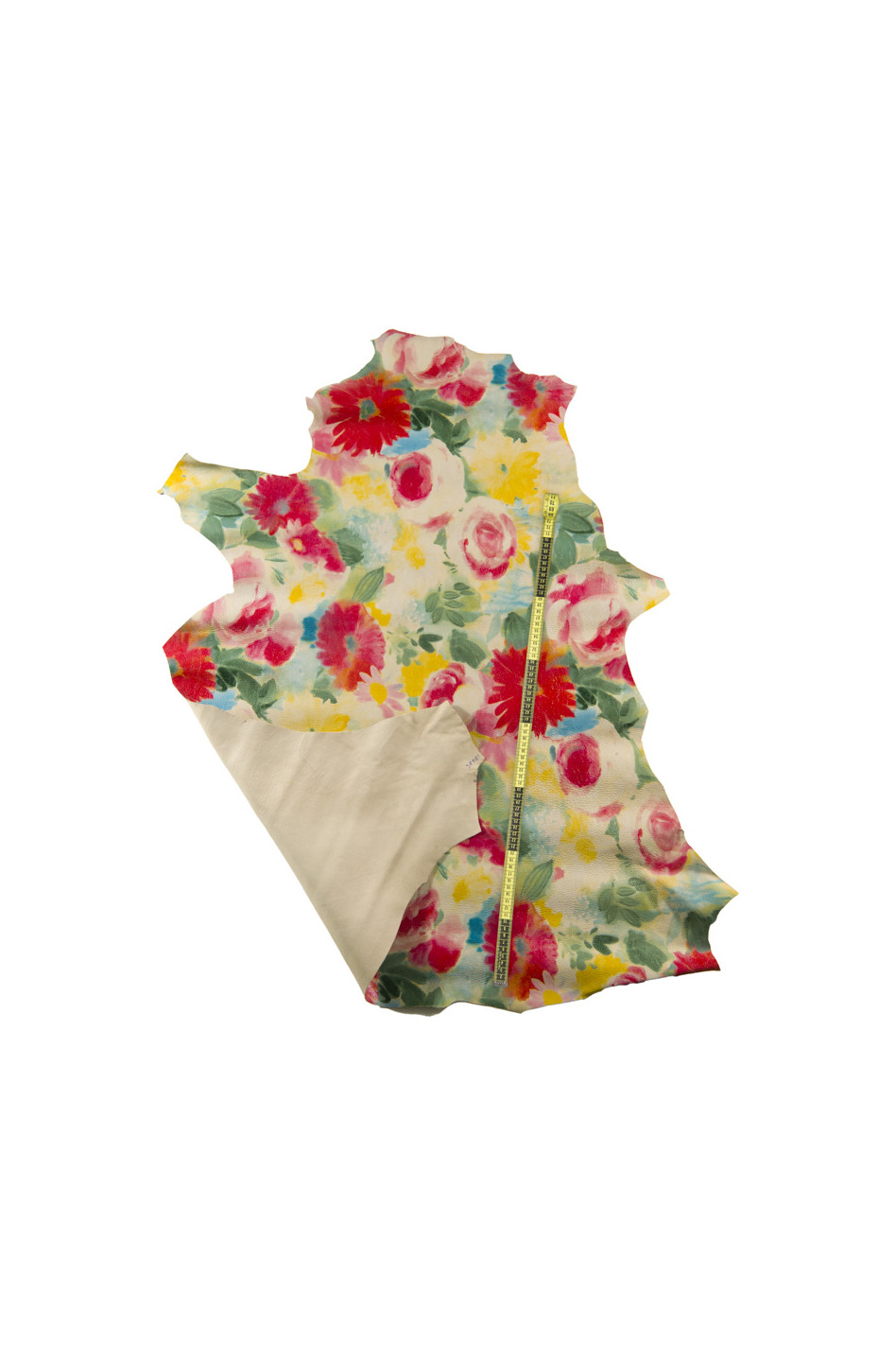 Pelle a FIORI multicolor, capra floreale STROPICCIATA, pellame fiorato lucido morbido