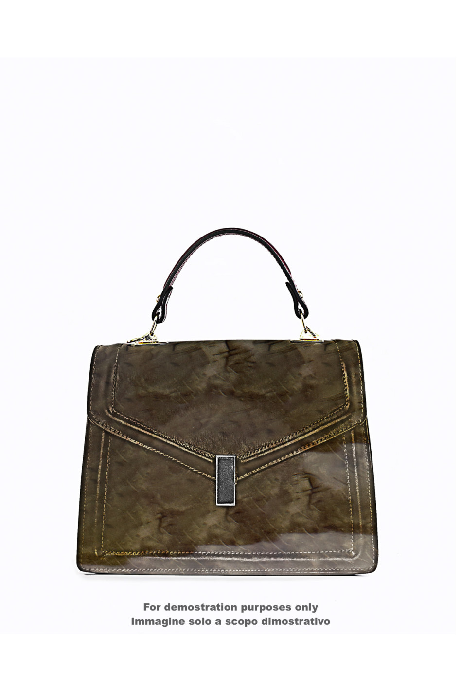 Bellissimo pellame verniciato marrone fango con stampa astratta.