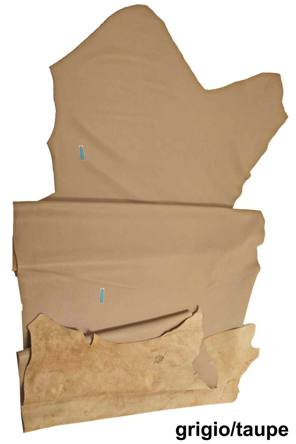 PELLE pieno fiore colore camel, grana dollaro, pellame bottalato grigio taupe per borse e arredamento