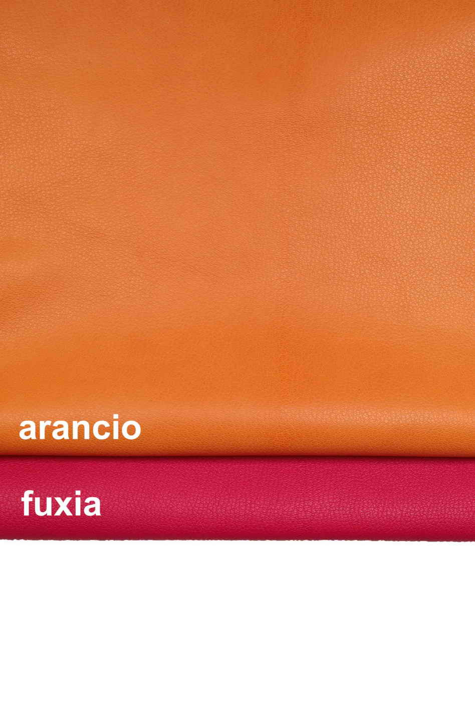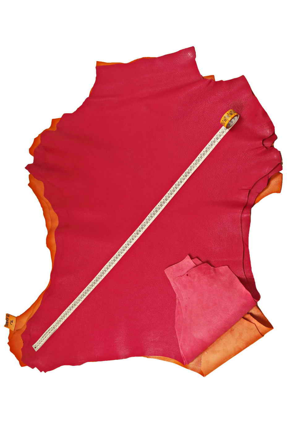 PELLAME CAPRA fucsia arancio morbido, pelle con grana naturale martellata