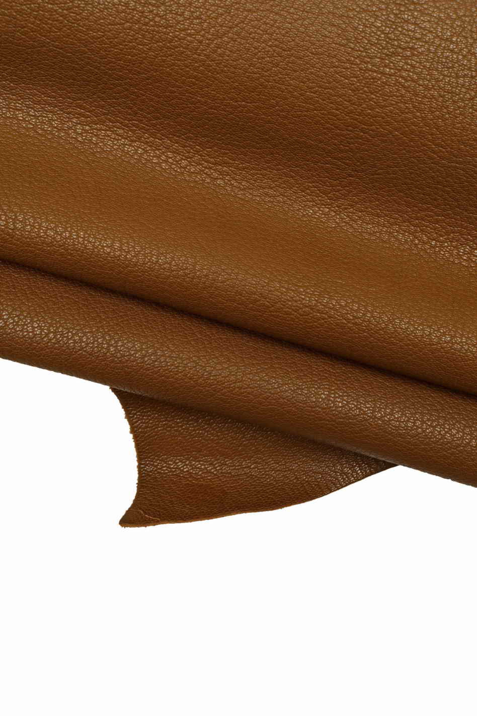 Favolosa pelle di capra marrone con grana piccola, lucida e morbida.