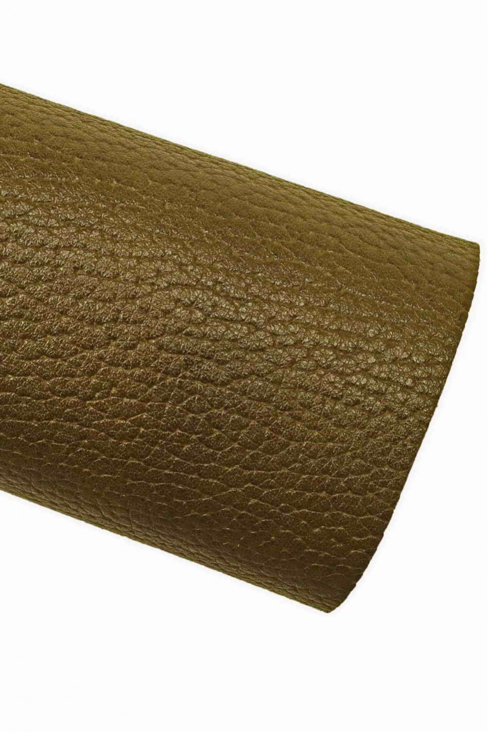 Favoloso pellame di vitello marrone verdastro con grana stampata, morbido, semi lucido.