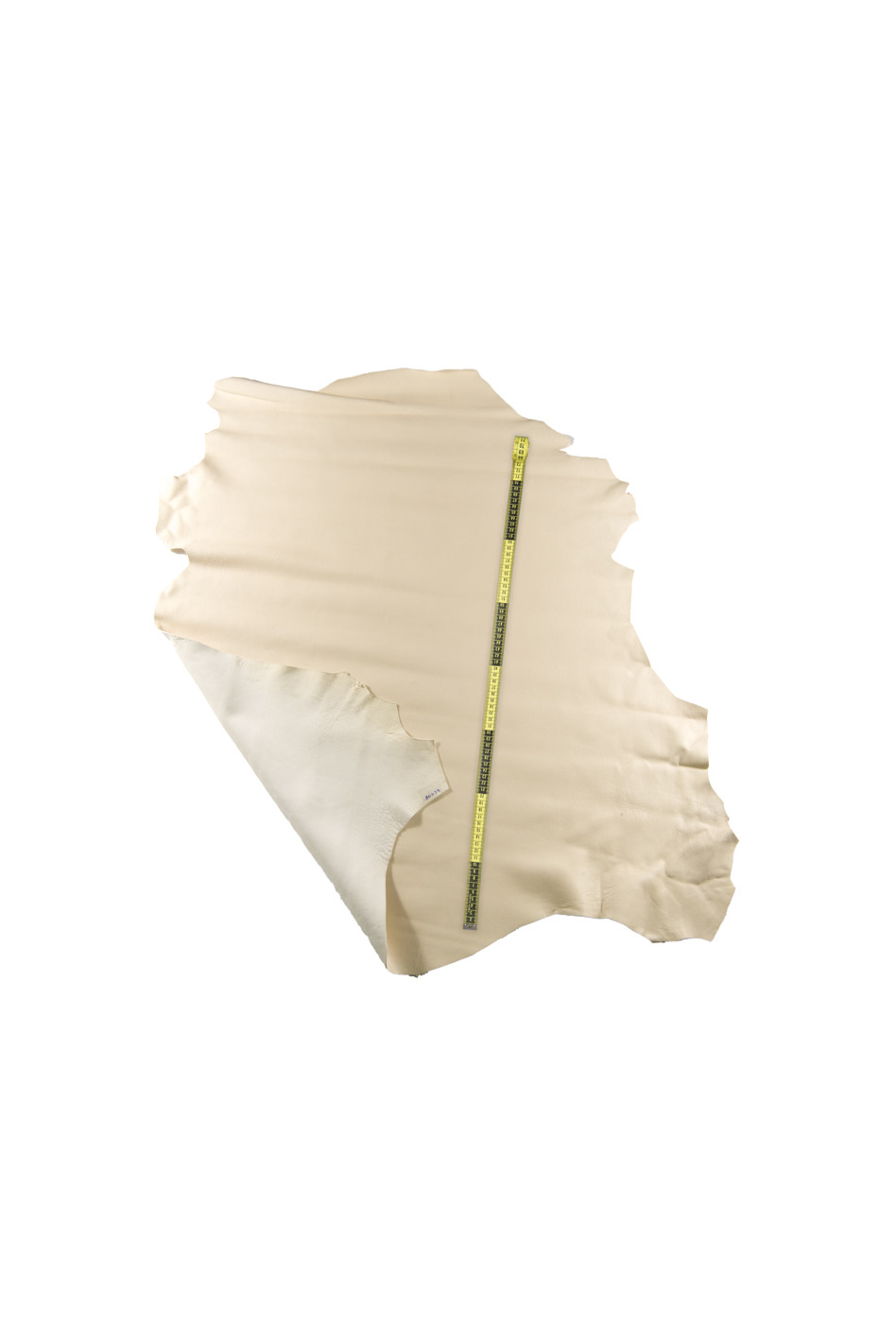 Pregiata pelle morbida panna, nappa di agnello con grana super fina, pellame 1.1 -1.3 mm. Materiale adatto per calzature, pelletteria e altri oggetti artigianali.
