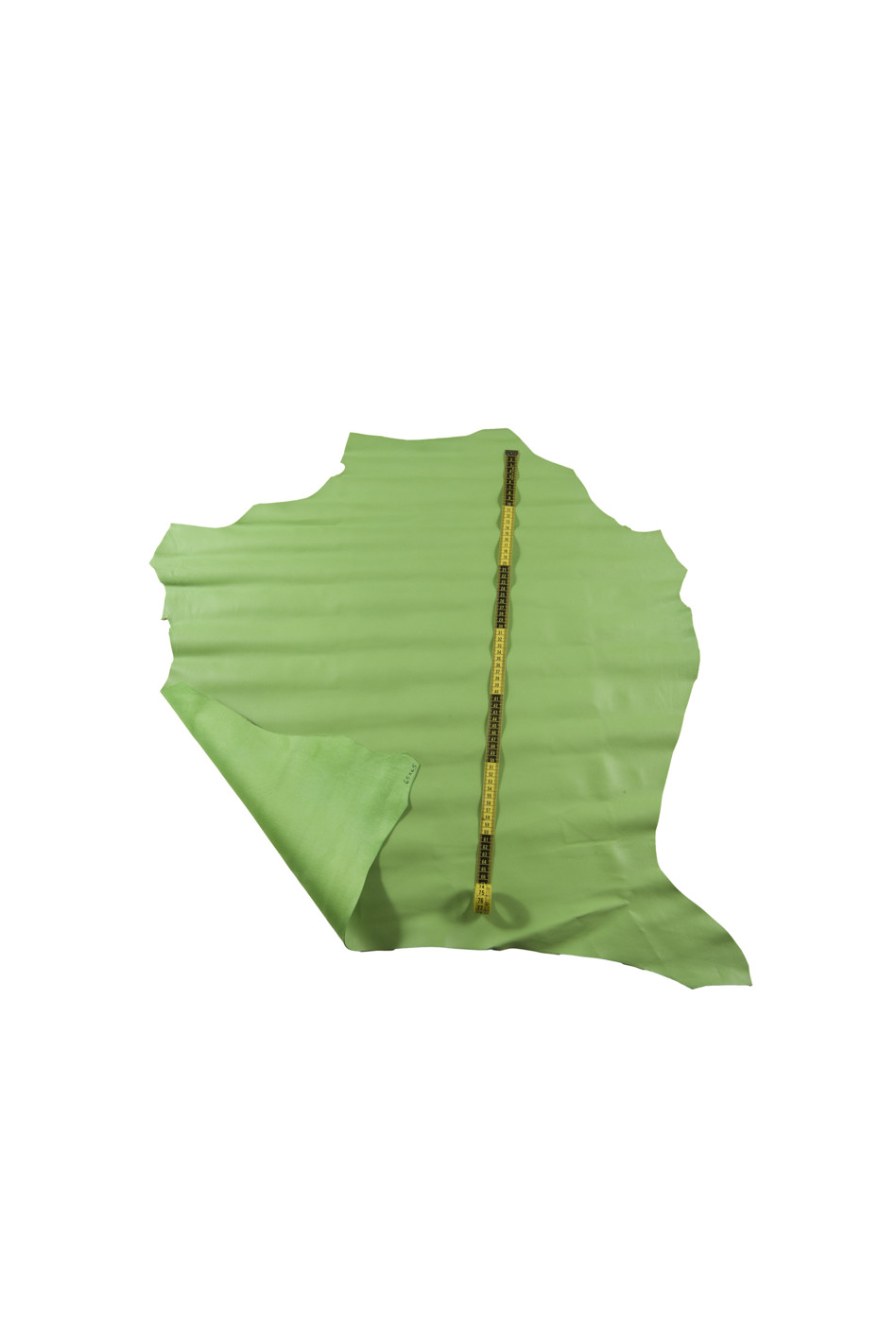 Fantastica pelle di nappa verde pisello liscia, morbida e semi lucida, ideale per calzatura ed abbigliamento.