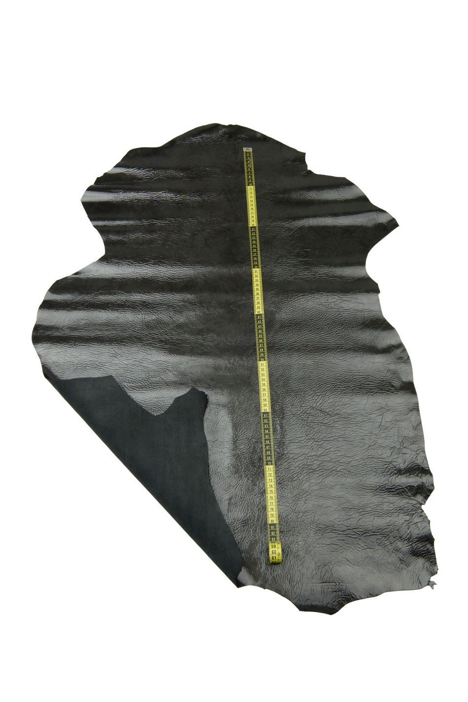 Stupenda pelle naplak grigio scuro, pellame vernice lucida morbida, agnello verniciato per hobbisti.