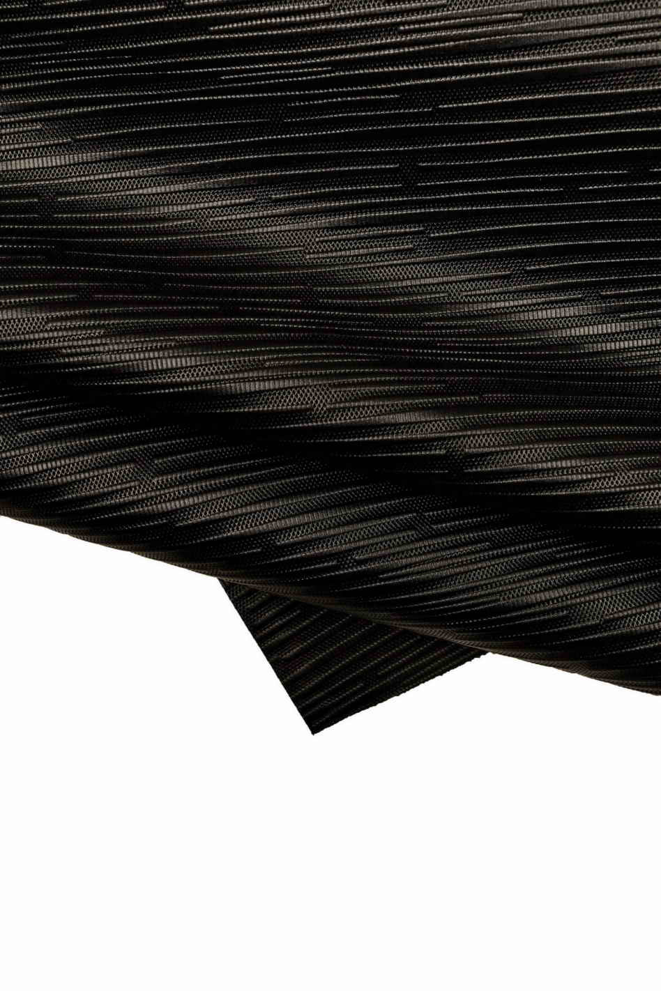 Stupenda pelle di vitello nero con stampa 3D in rilievo, semi lucida, morbidezza media.