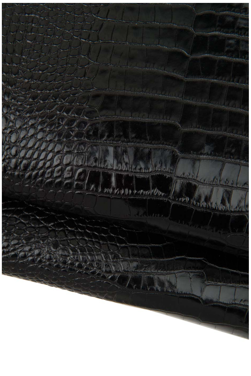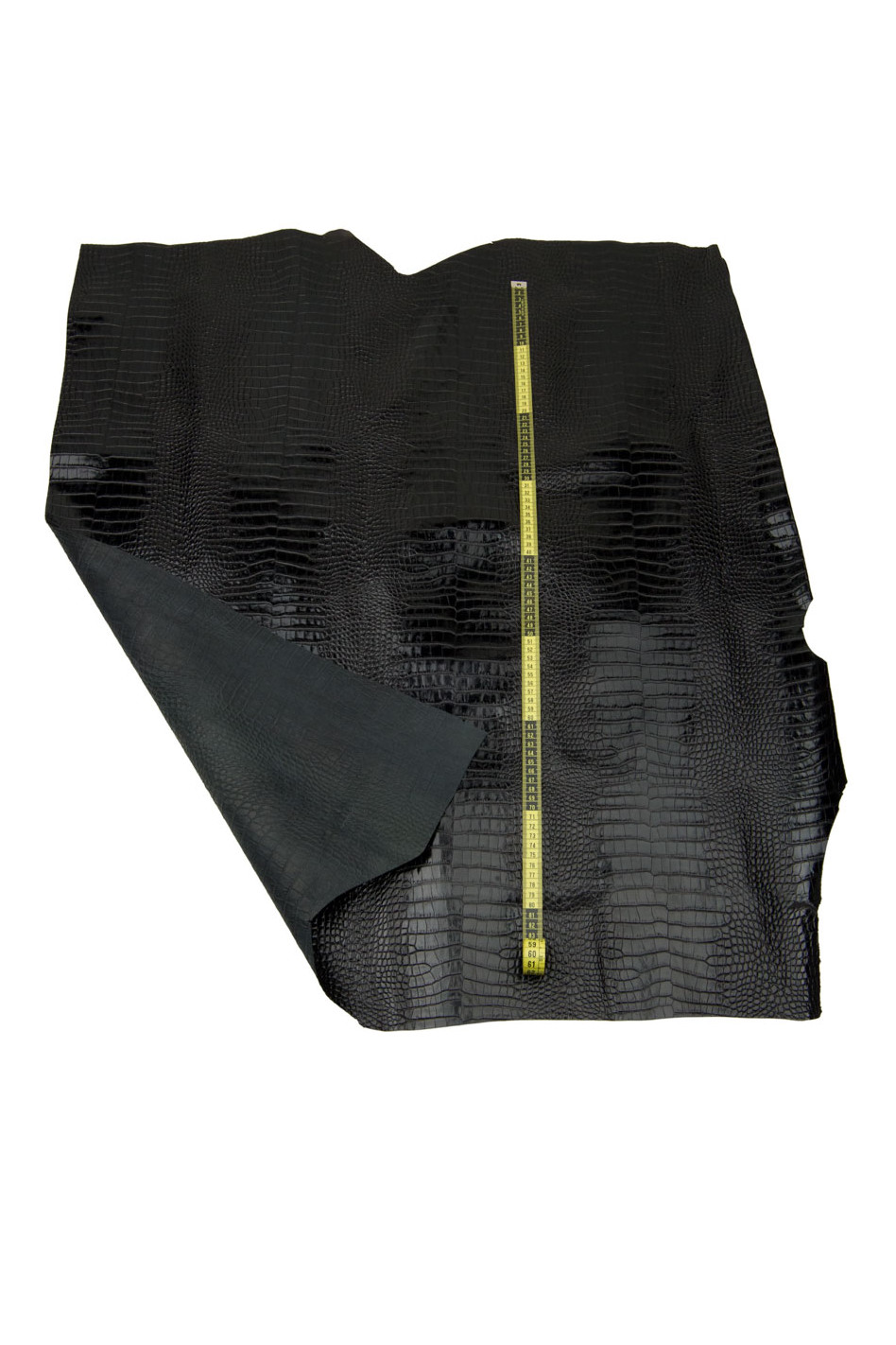 Pelle COCCODRILLO nero, vitello LUCIDO stampa coco, pellame per fai da te, morbidezza media