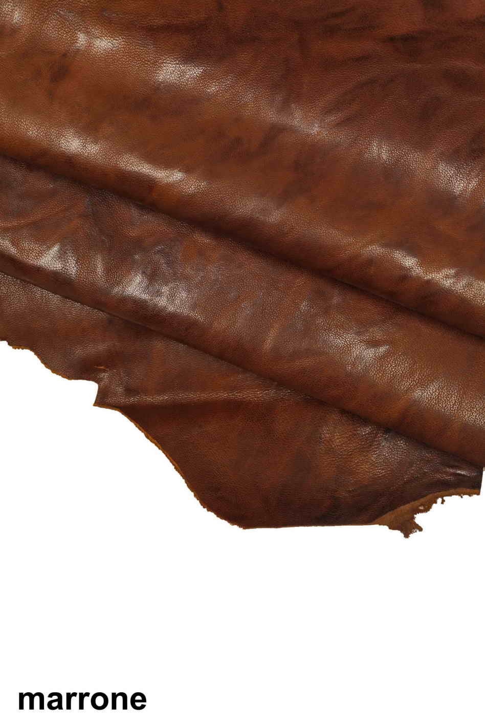 PELLE concia VEGETALE - Pellami stropicciati tono marrone, pellame nappa montone lavata vintage sportivo