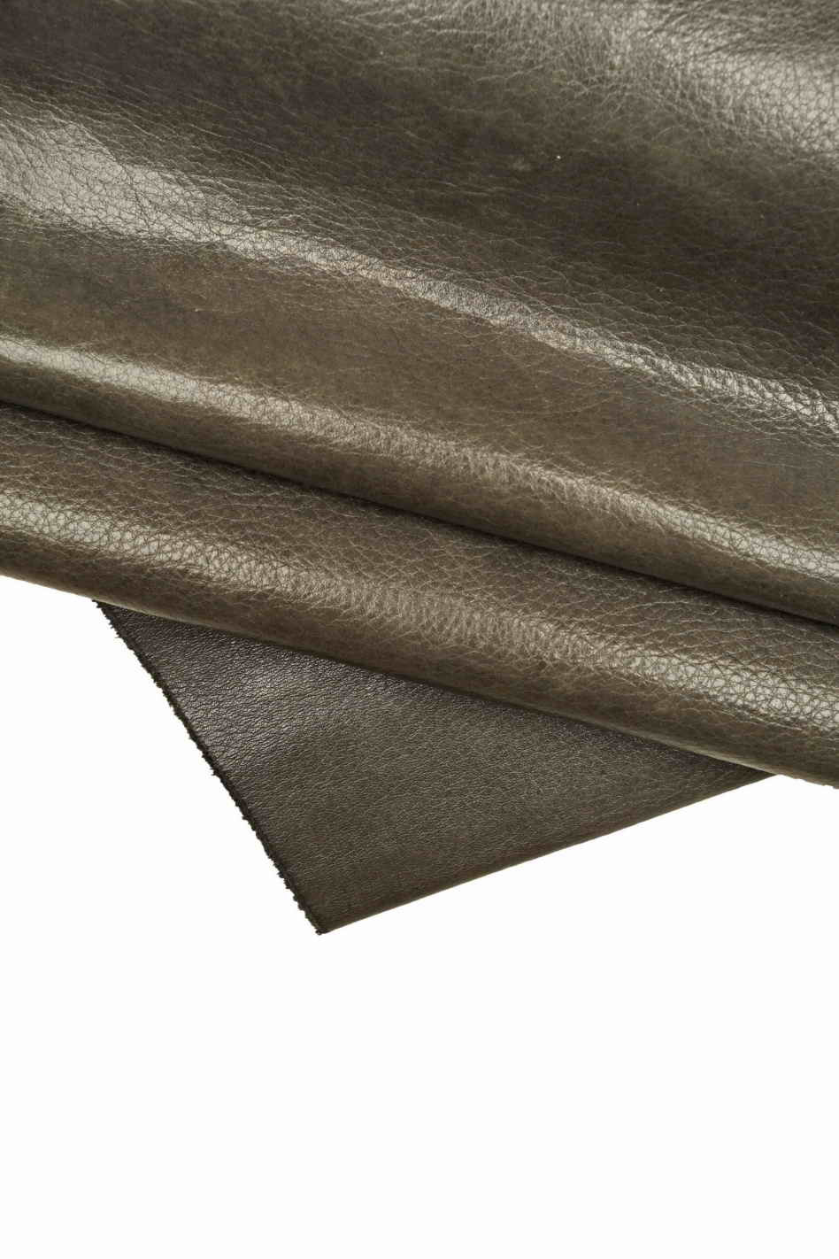 Meravigliosa pelle di vitello sportivo vintage di colore grigio con grana, lucida, morbida.