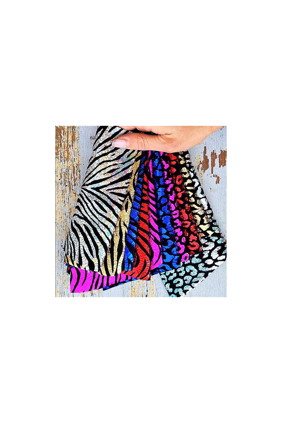 10 Ritagli di pellami unici selezionati, stampa ANIMALIER, pezzi di pelle assortimento mix di fantasie come da foto