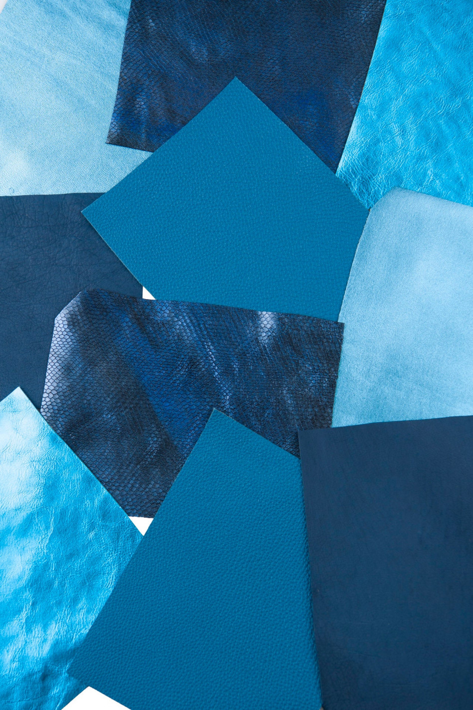 10 Ritagli di pellami unici selezionatI, toni BLU e AZZURRO, pezzi di pelle assortimento come da foto