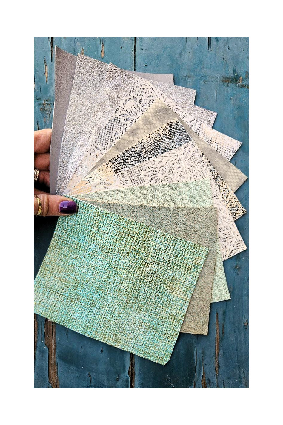 10 Ritagli di pellami unici selezionati, colori e stampe varie, laminate e non, pezzi mix di fantasie come da foto