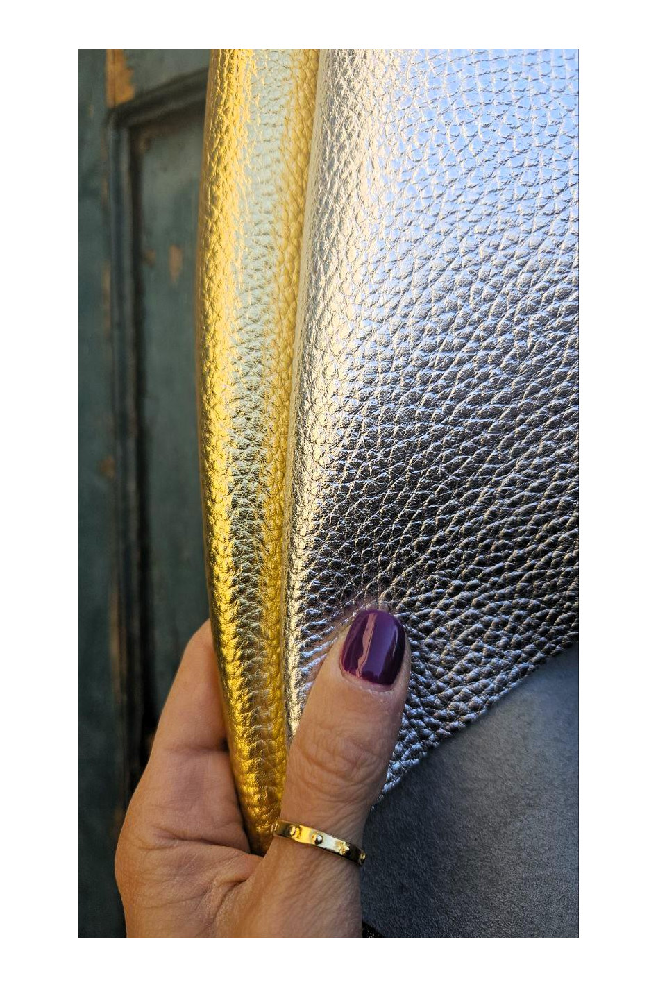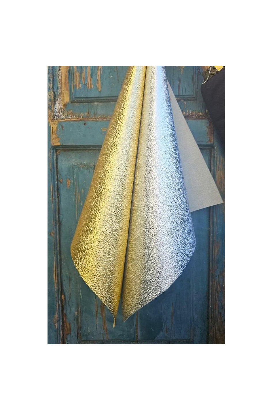 Pellame in pezzi, vitello grana dollaro, laminati oro e argento, molto morbidi