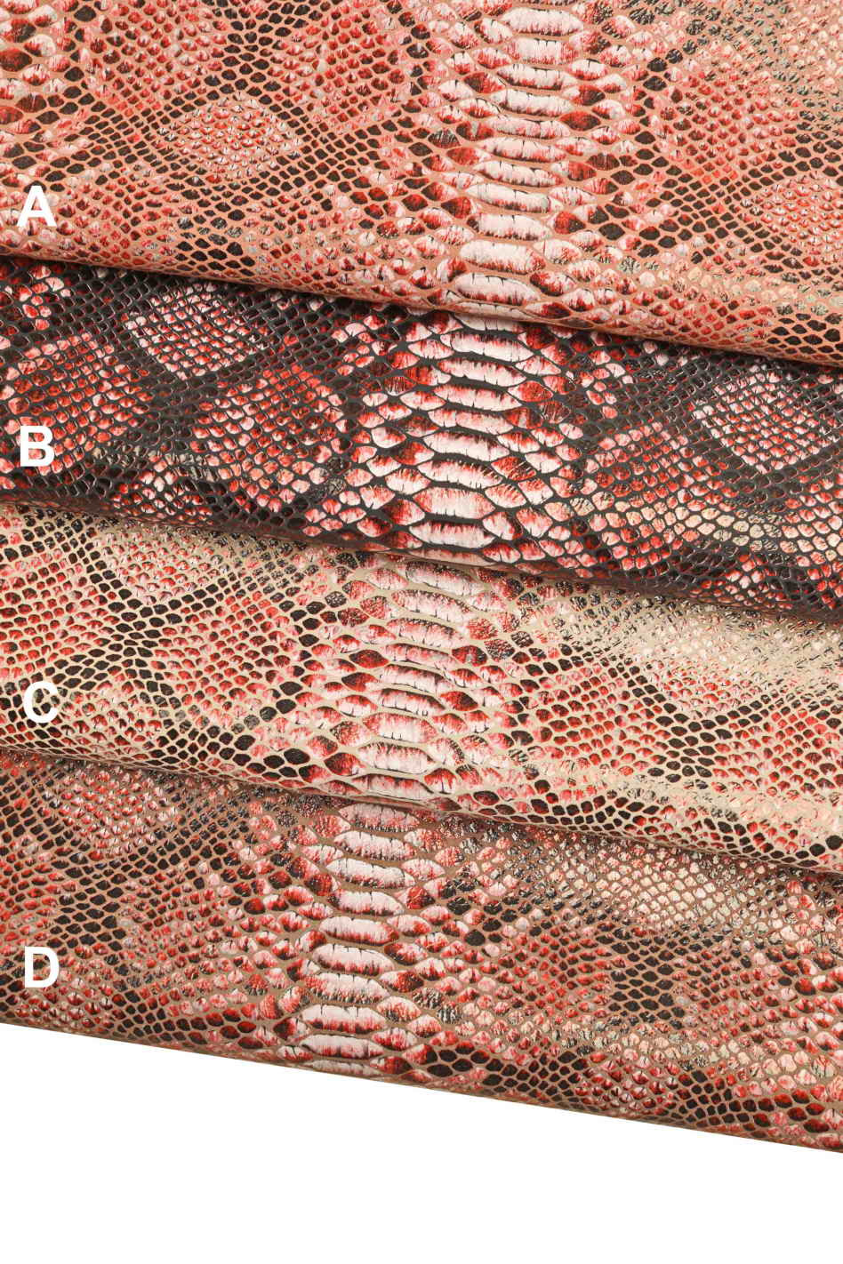 PELLE di PITONE stampata boa- camoscio laminato con stampa rettile colori rosso/nero/bianco -cuoio serpente