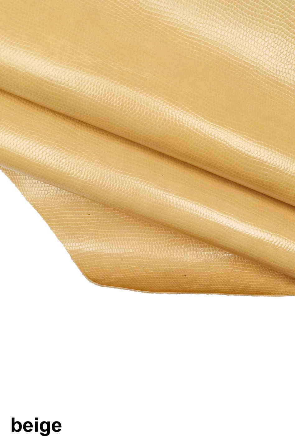 Bellissimo pellame stampa lucertola, pelle di vitello stampato beige, pistacchio, arancio, bordeaux, grigio perla, con leggeri chiaro scuri di colore, lucido, leggermente rigido, look classico/raffinato.