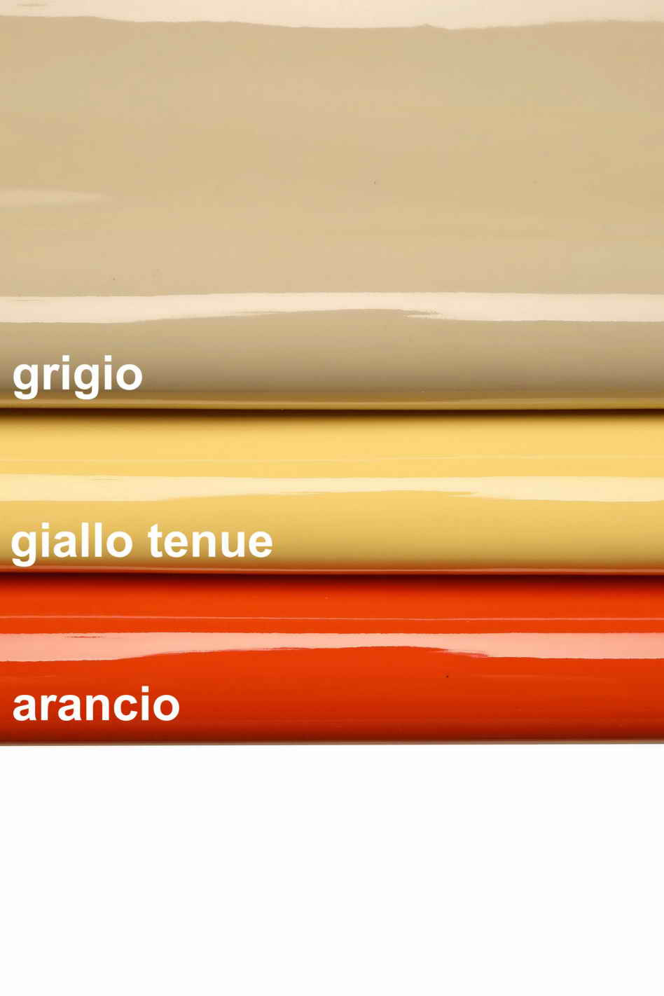 PELLAME VERNICIATO grigio, giallo tenue, arancio, pelle di vernice, liscia lucida, abbastanza rigida