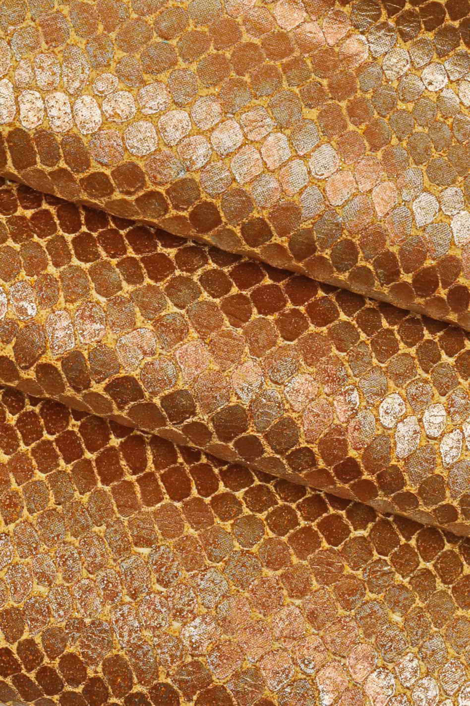 Pellame STAMPATO PITONE cuoio arancio, pelle stampa rettile metallizzata, capra motivo serpente morbida