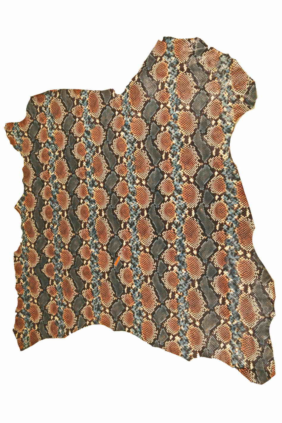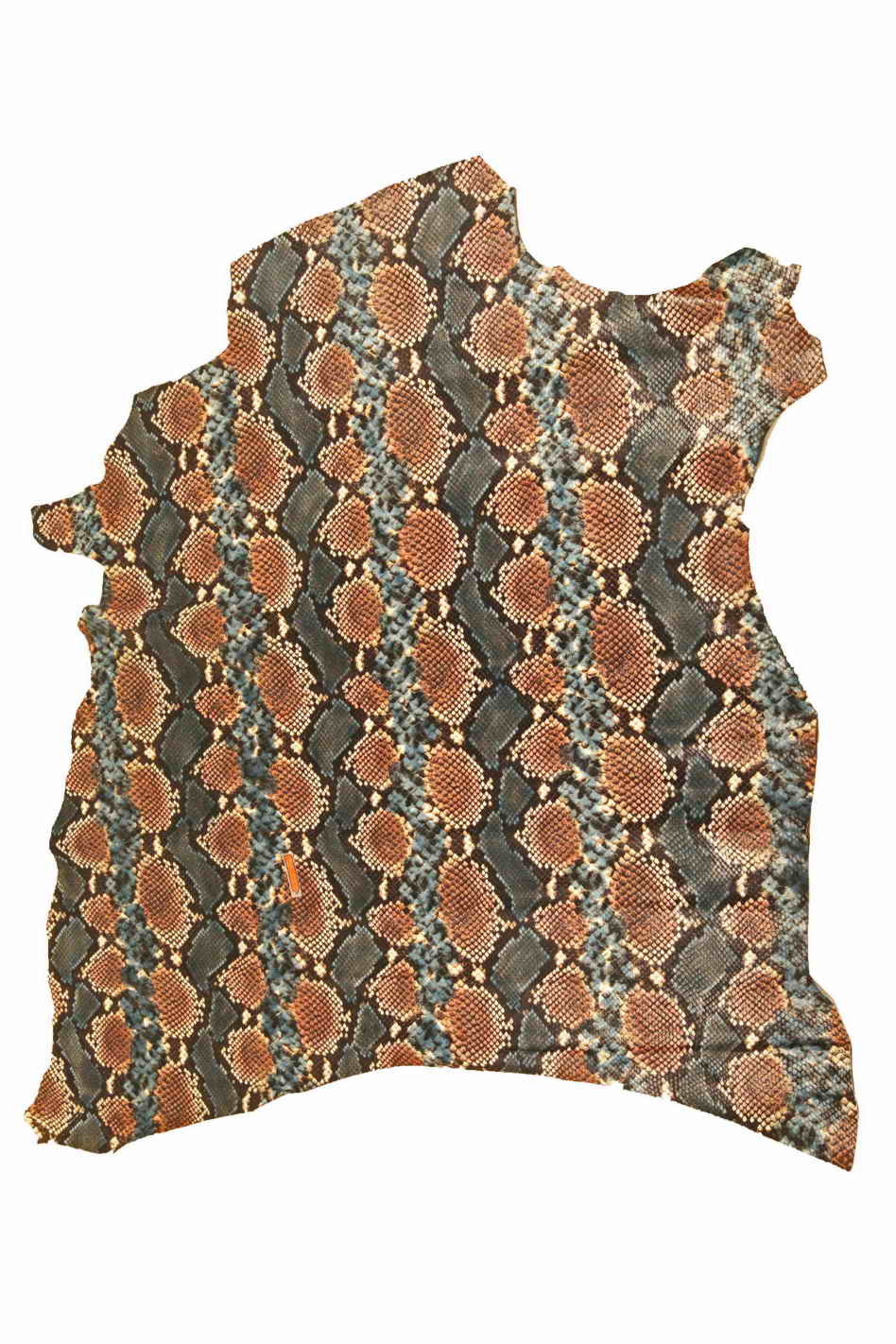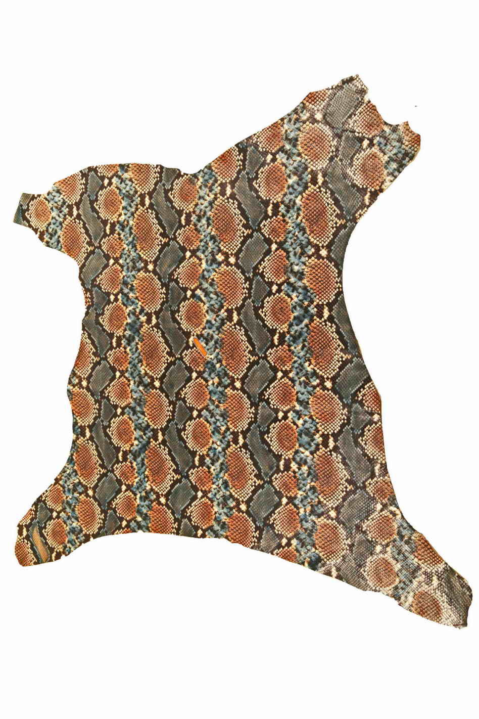 Pellame disegno SERPENTE verde marrone azzurro, capra stampa pitone opaca, pellame animalier stampata rettile morbido