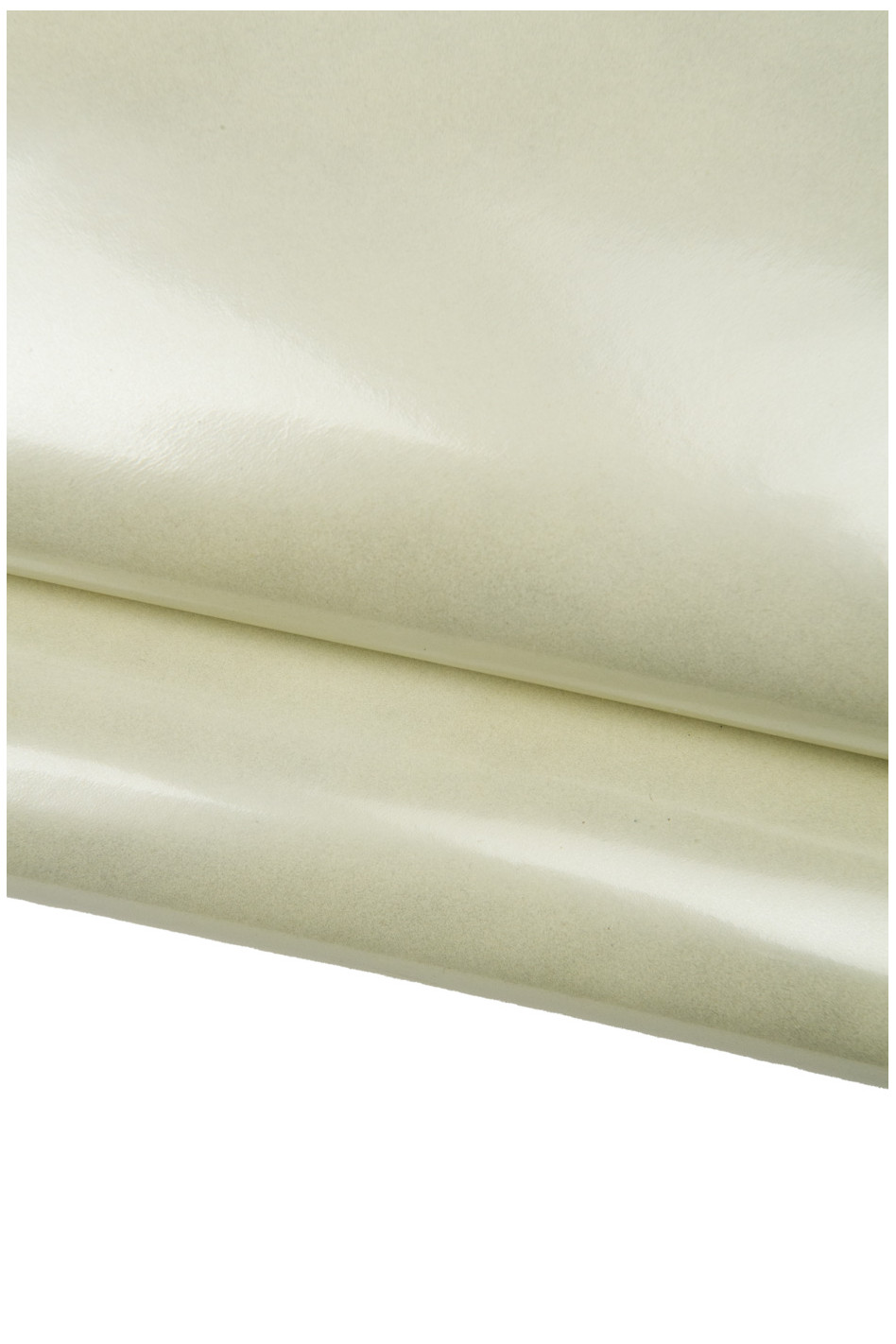 Fantastica pelle lucida beige sfumata grigio, vitello liscio abrasivato, pellame 1.2 - 1.4 mm, leggermente rigido.