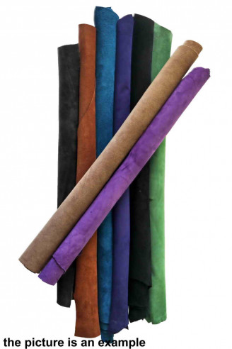 Scampoli di grandi dimensioni di pelle scamosciate (crosta e camoscio) e nubuck in tinta unita, in colori differenti, gamma di colori invernali, pezzi morbidi, look sportivo. Disponibili in due varianti, lotti di 5 pezzi e di 8 pezzi. Ritagli di vera pelle italiana. La misura approssimativa più piccola è di 40 x 40 cm.