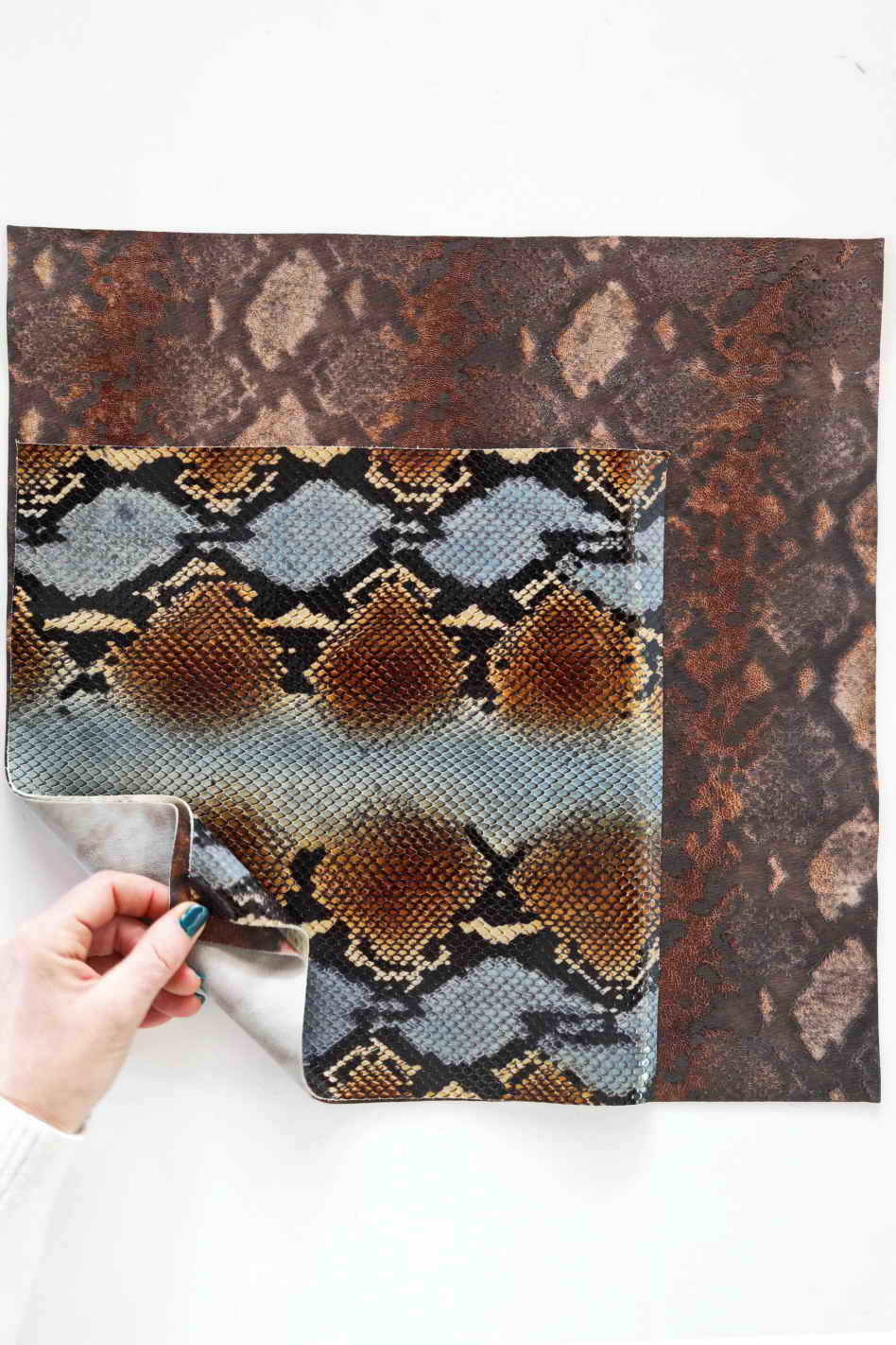 25 pezzi di pelle pretagliati, scelta CASUALE di pellami laminati, fantasia, stampati, vernice, vintage e tinta unita