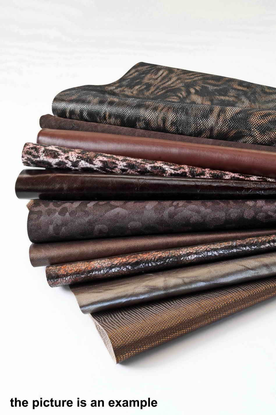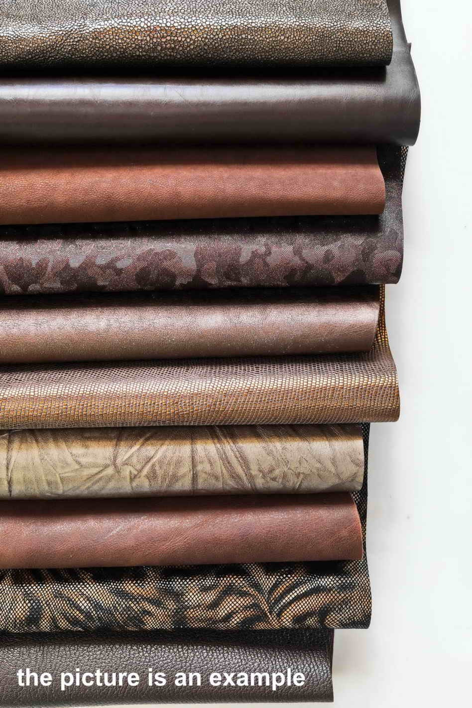 Scampoli di pelle miste, tonalità di MARRONE, TESTA di moro e BRONZO, stampe, lamine e fantasie varie, 10 o 15 pezzi