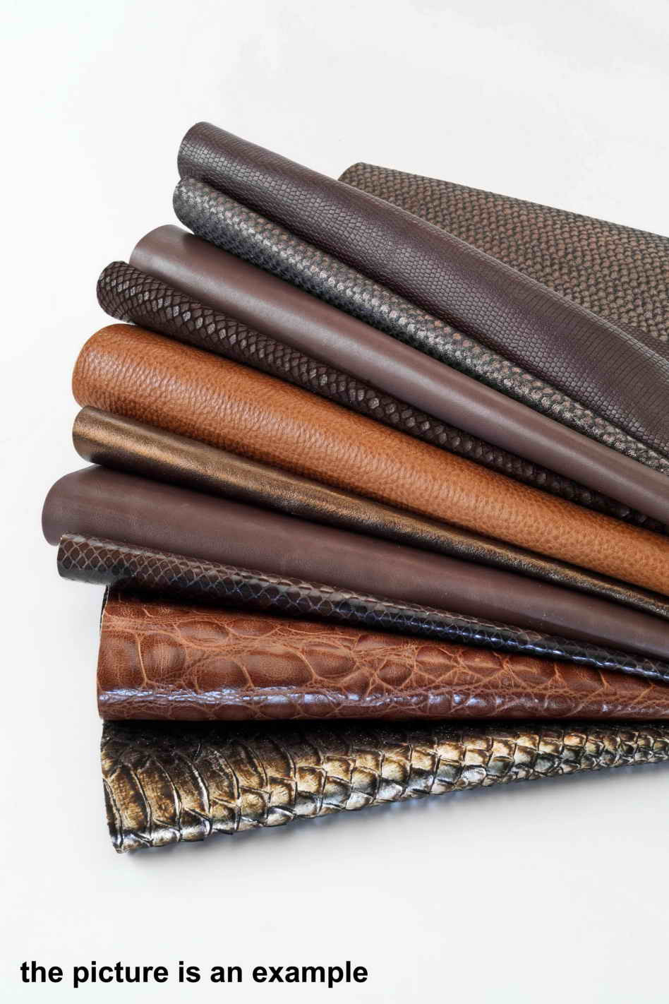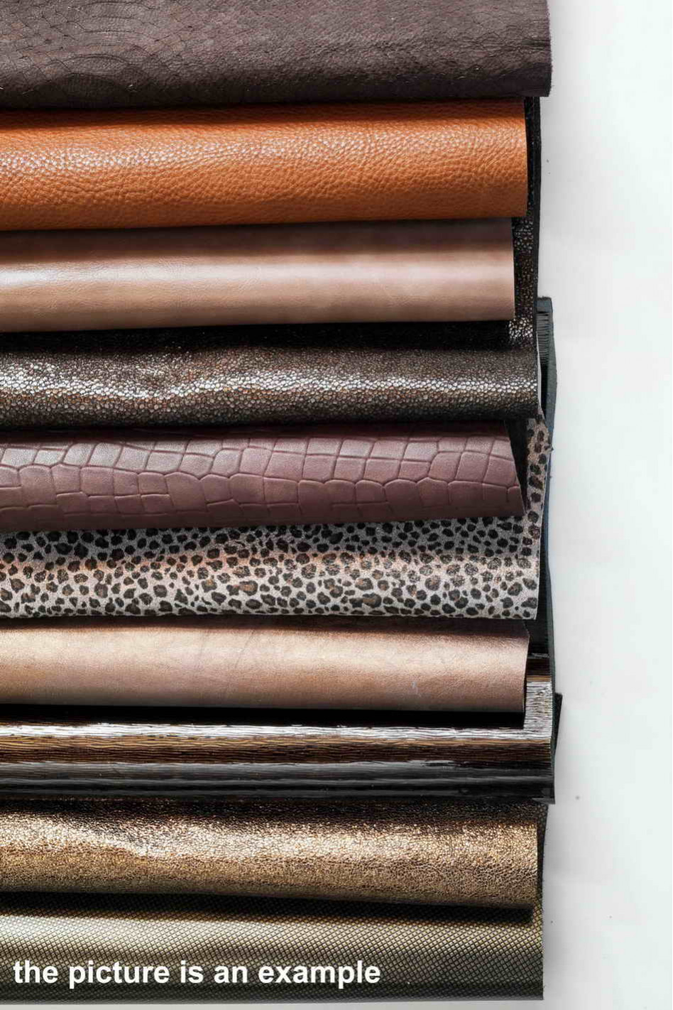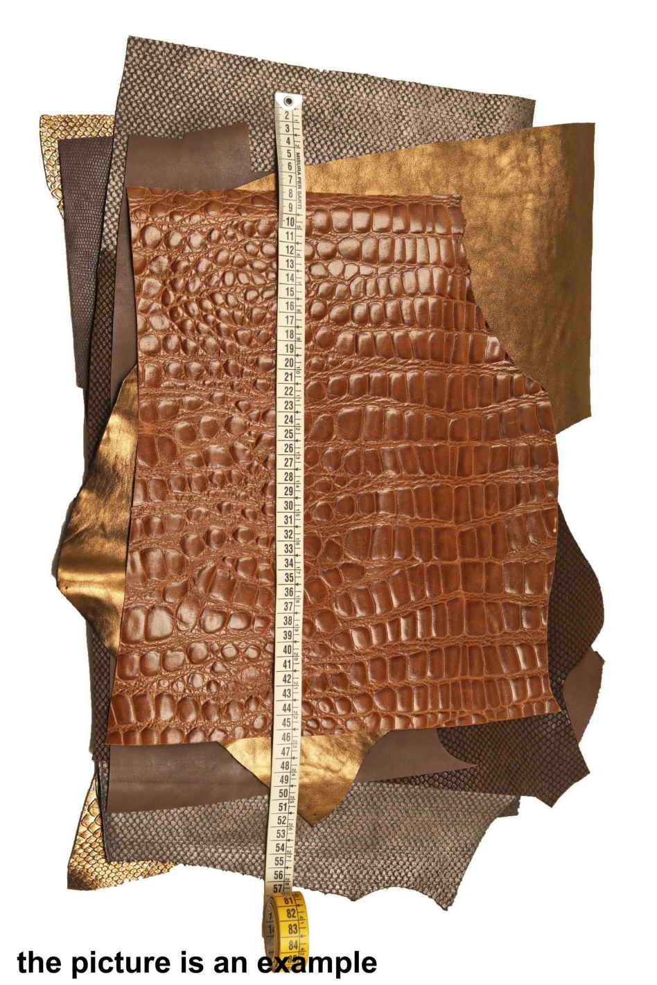 Scampoli di pelle miste, MARRONE, TESTA di moro e BRONZO, stampe, lamine e fantasie varie 0,500 kg - 0,750 kg - 1 kg - 2 kg