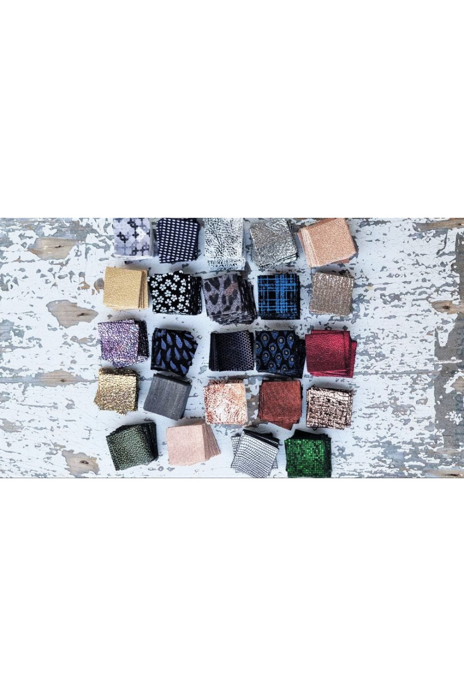 Sono pezzi di pelle stampate di colori rifinizioni e fantasie differenti. Ritagli di vera pelle italiana.