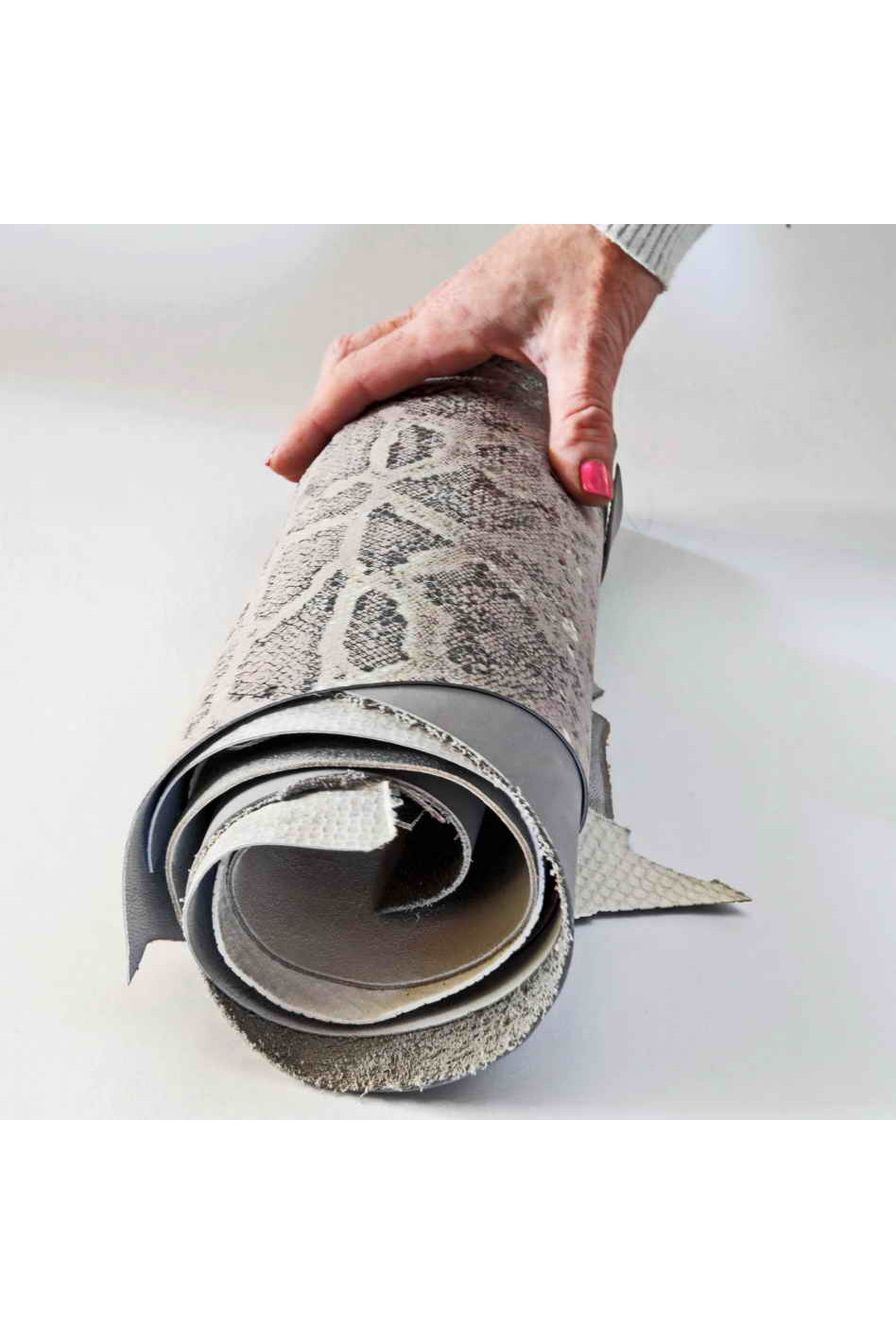Scampoli di pelle miste color GRIGIO CHIARO, fantasie varie e tinta unita, ideali per l'artigianato 0,500 kg