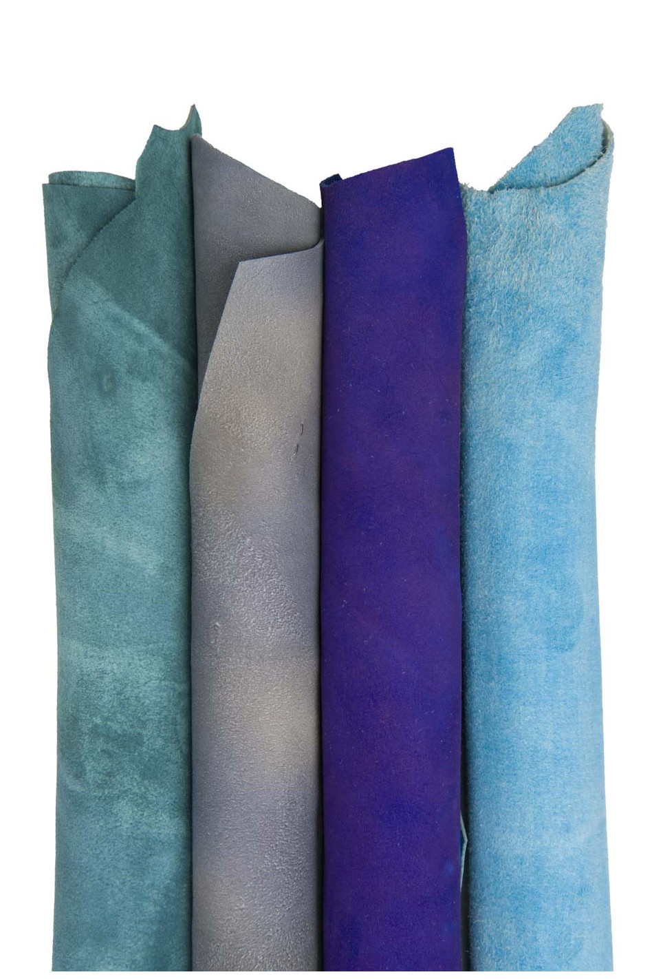 Incredibile lotto di 4 pelli vintage scamosciate, pellami camoscio super morbidi sfumati effetto tie dye