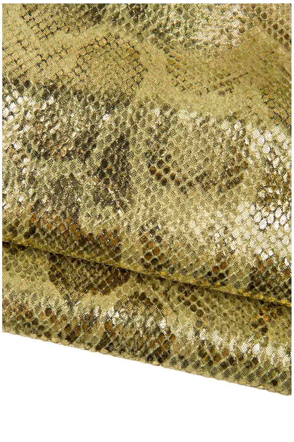2 pelli oro - verde abbinate come da foto, capra LAMINATA e vitello metallizzato stampa PITONE