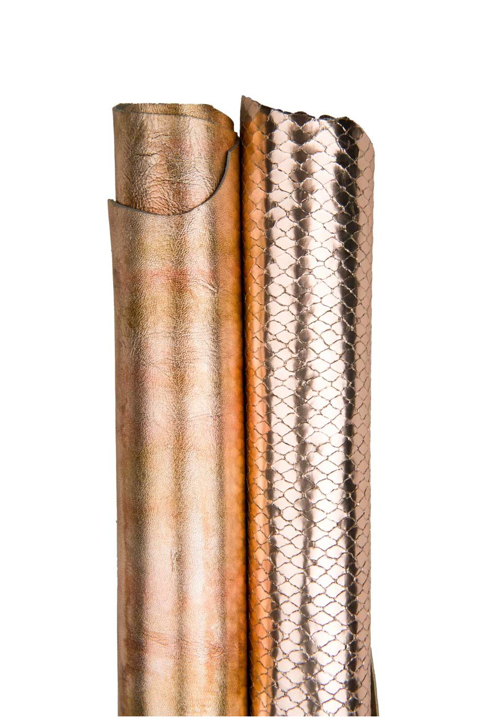 2 pelli rosa abbinate come da foto: capra METALLIZZATA stampa pitone + pellame LAMINATO liscio sfumato