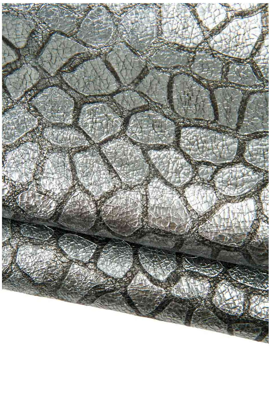 Set di 5 pelli acciaio - argento, assortimento di pellami LAMINATI STROPICCIATI stampati animalier come da foto