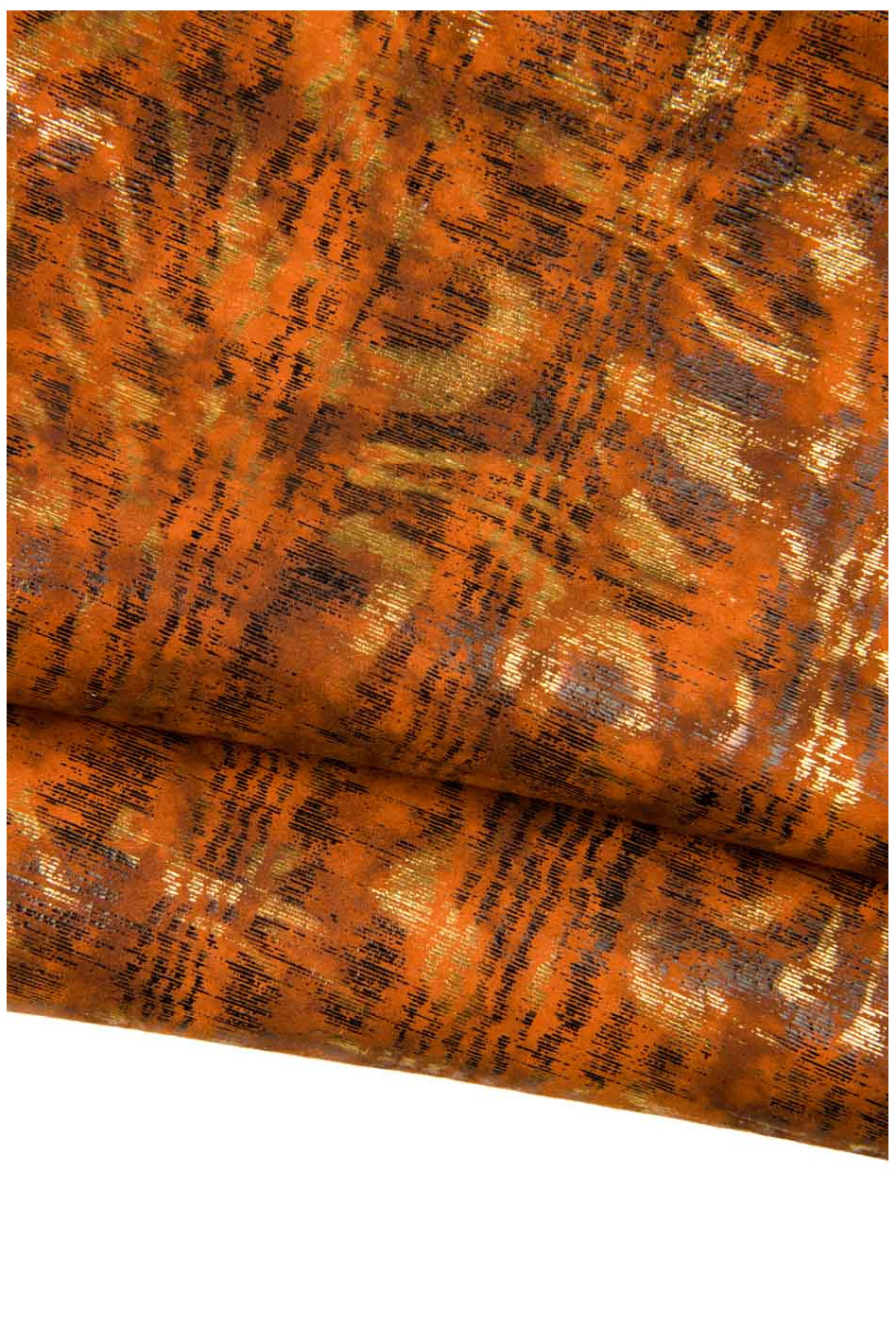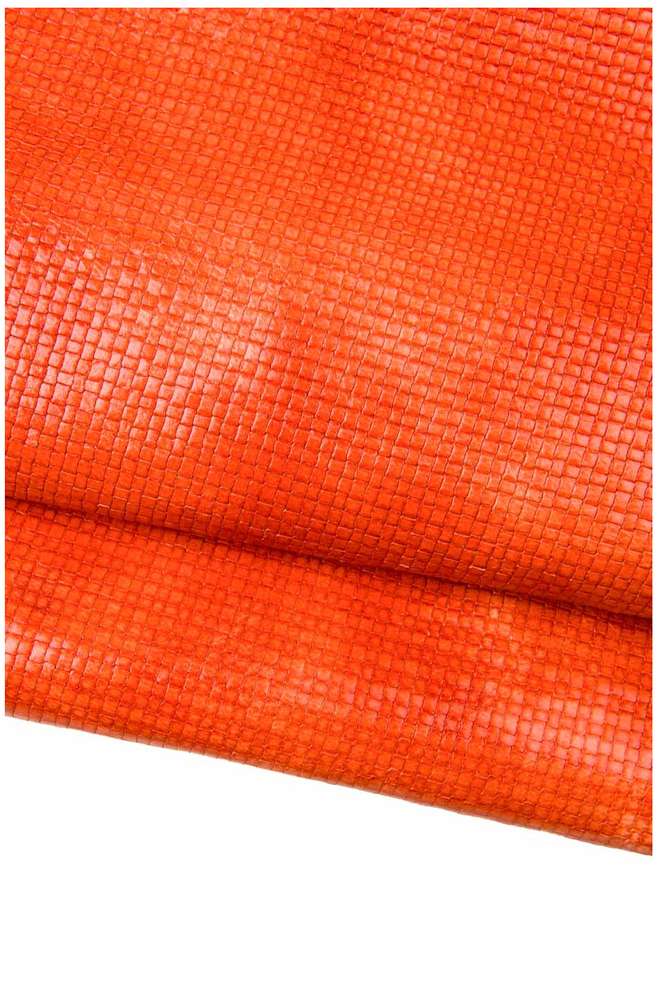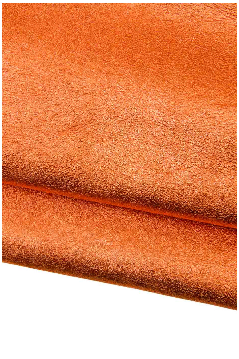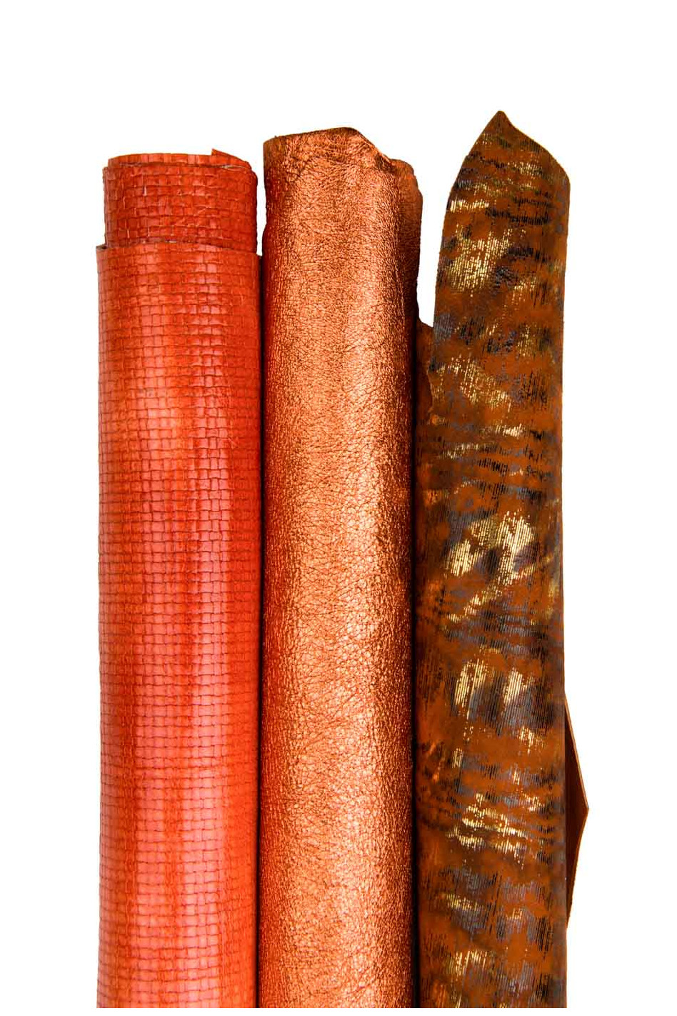 Meraviglioso lotto di 3 pelli arancioni, assortimento pellami laminati e stampati, morbidi, luminosi, abbinati come da foto.