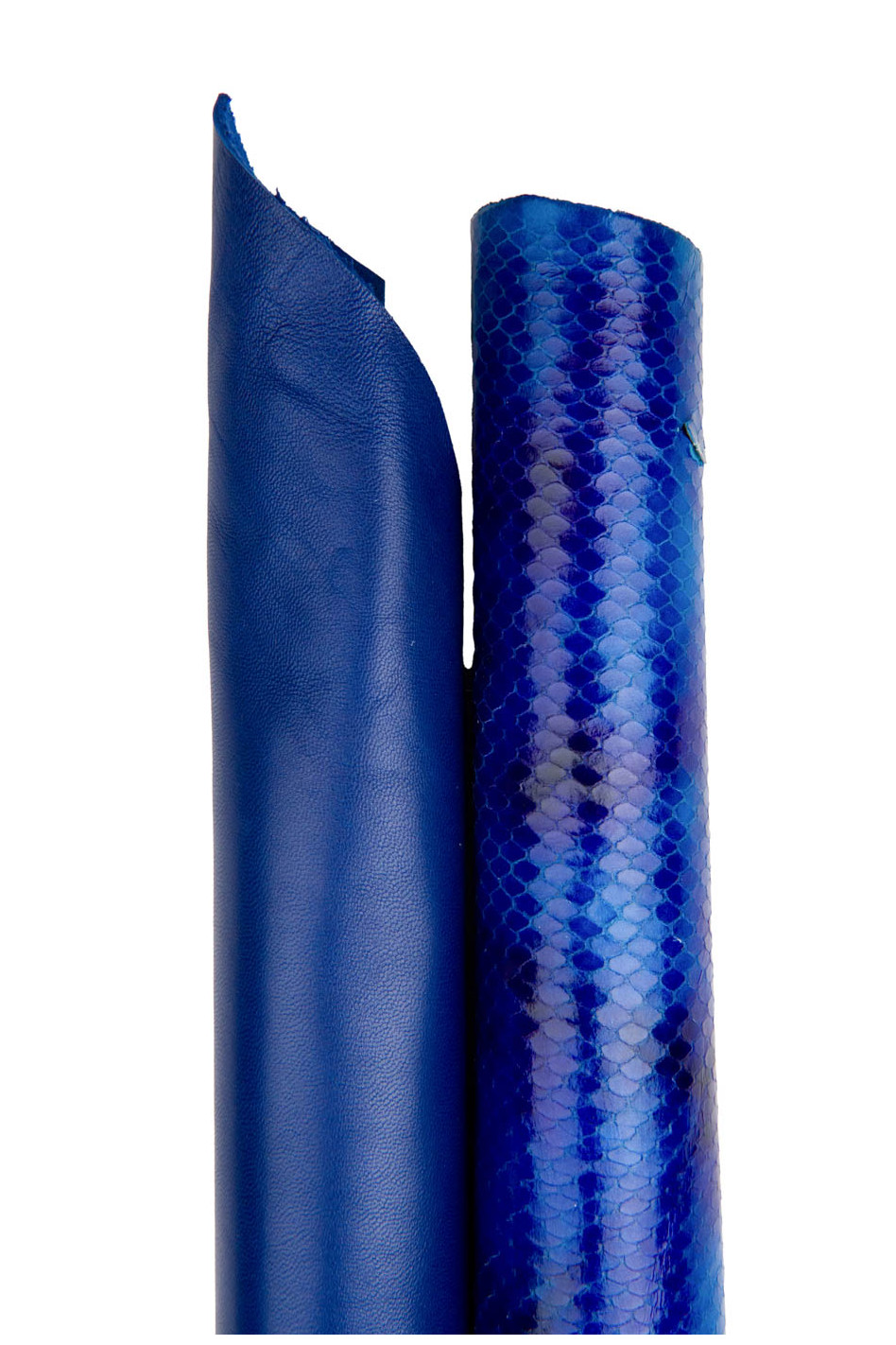 SET di 2 pelli BLU, nappa agnello tinta unita + vitello stampa pitone sfumato, abbinati come da foto per fai da te
