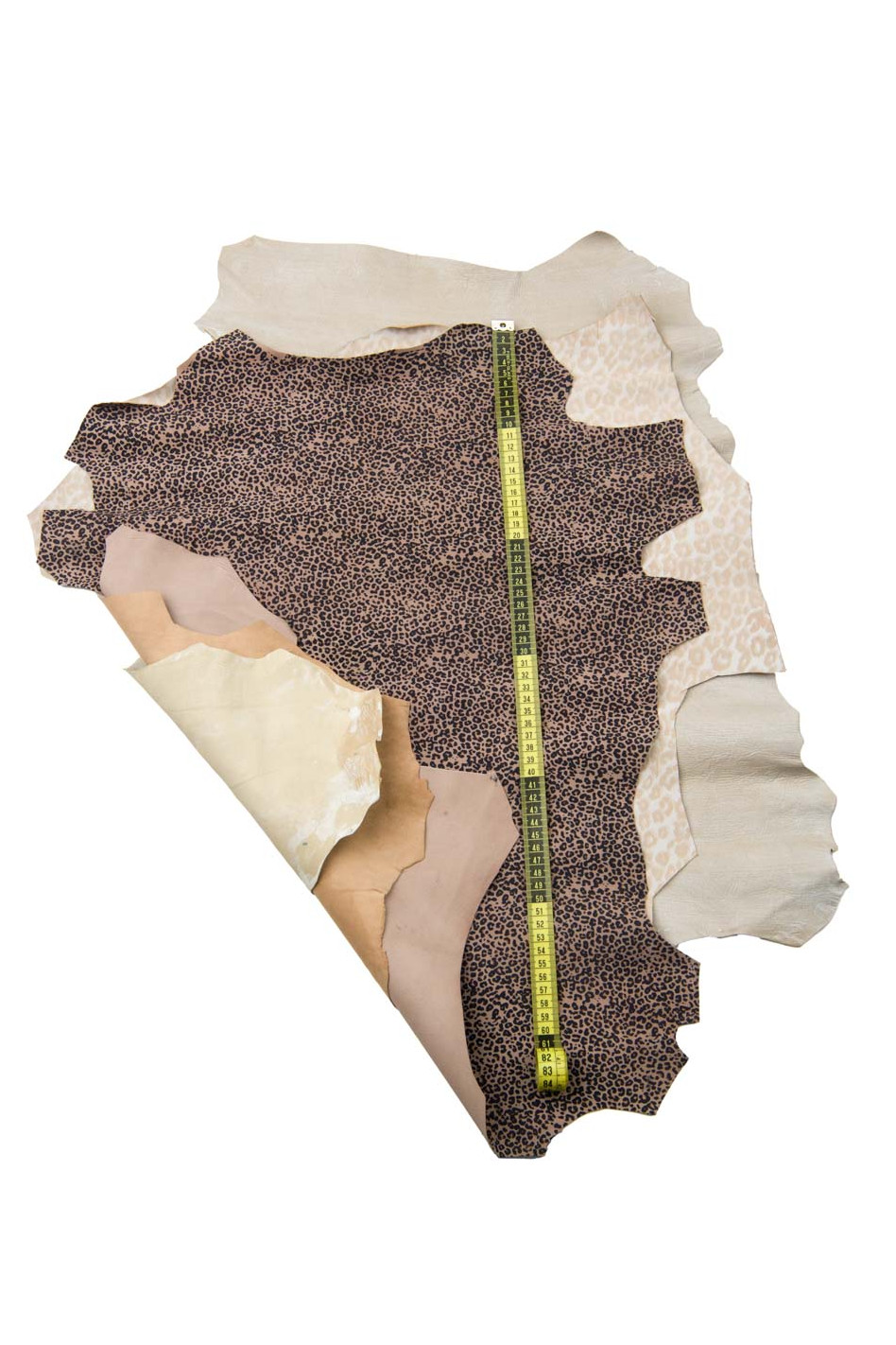Lotto di 3 pelli beige abbinate come da foto: pellame lucido stampa CRACKLE + capra scamosciata stampa LEOPARDO