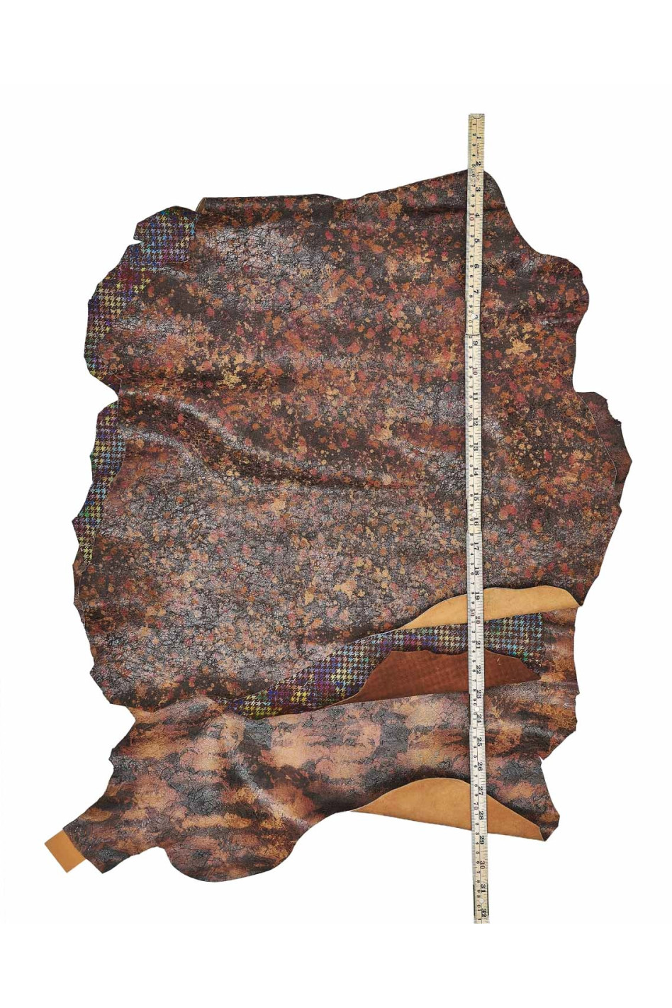 Meraviglioso lotto di 3 pelli di capra stampate sportive color marrone e multicolor ideali per l'artigianato.