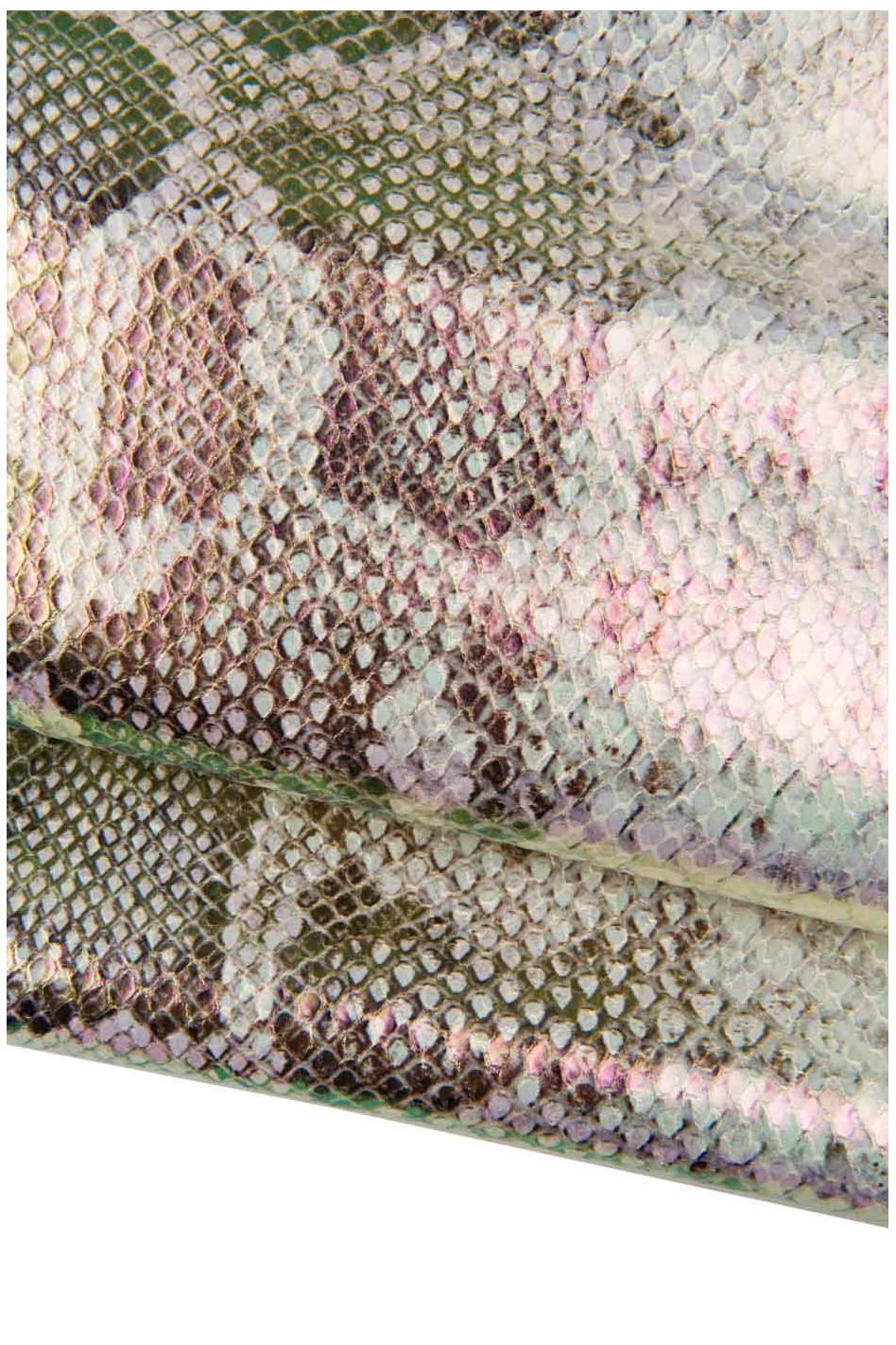 Lotto di 2 pelli PLATINO: 1 vitello stampa pitone IRIDESCENTE e una capra laminata, ideali per il fai da te
