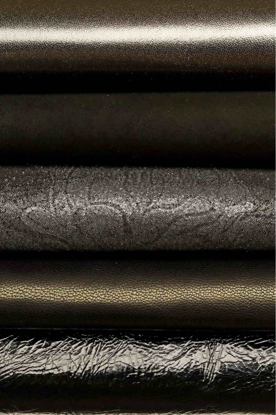 Lotto di 10 pelli casuali NERO, GRIGIO, acciaio, stock di pellami lisci, laminati, stampati in abbinamento