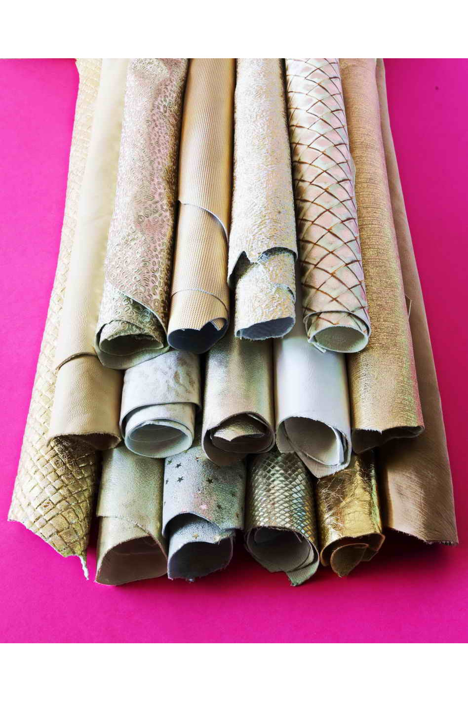 - Pellami esclusivi Made in Italy recuperati dalle giacenze dei più grandi brand di moda italiani.