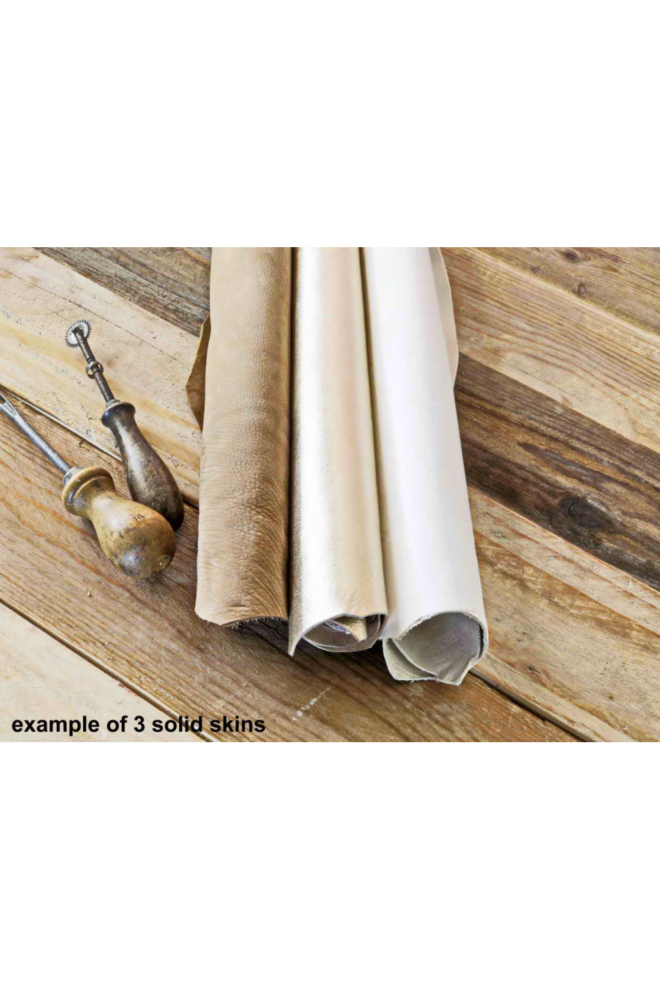 -2 pelli in tinta unita (lisci, con grana o senza, o scamosciati, o laminati) e 1 pelle stampata, che potrebbe essere laminata o non,