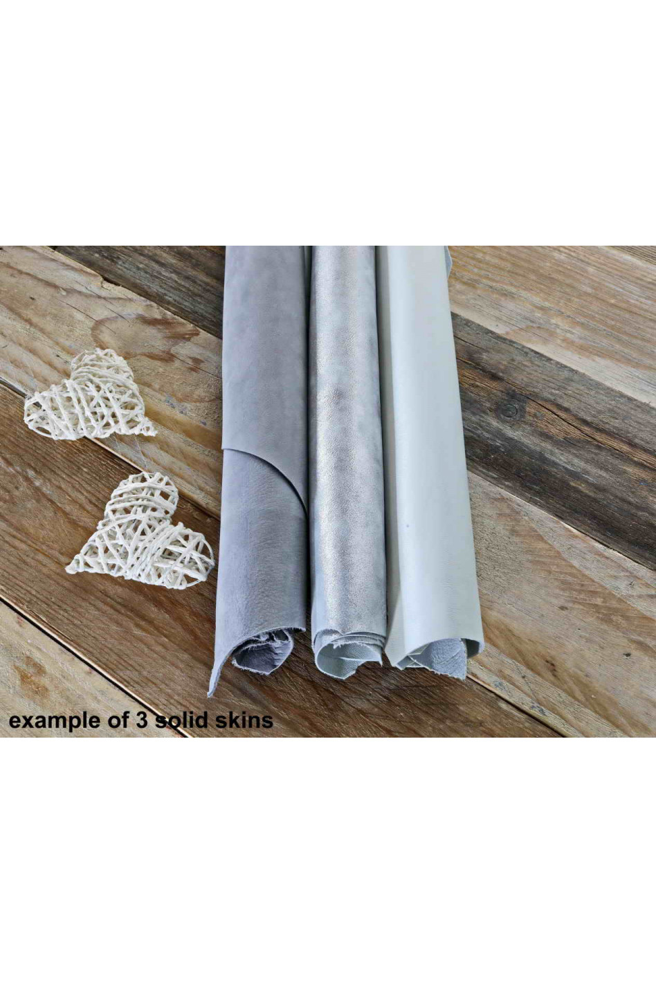 Scegli la tua combinazione preferita di 3 pelli nei toni argento, bianco e grigio chiaro!